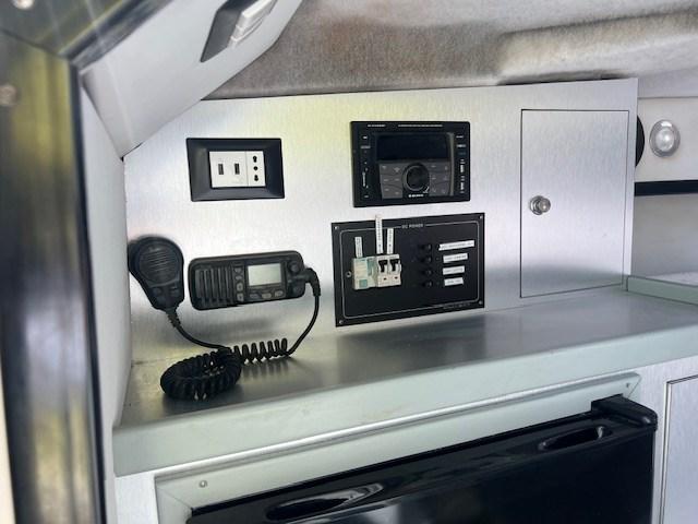 Alarme moteur, Alarme de pompe de cale, Eau sous pression, Couleur spéciale, Douche de cockpit, Pompe de cale automatique, Prise de quai, Guindeau électrique, Echelle de bain, Corne.