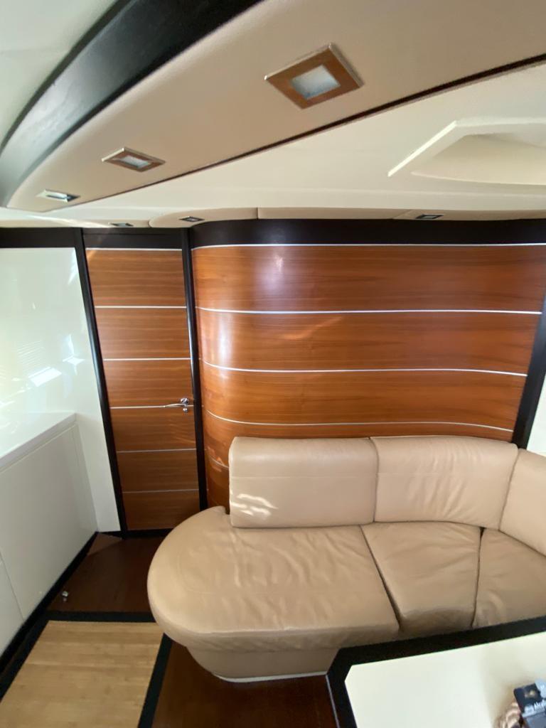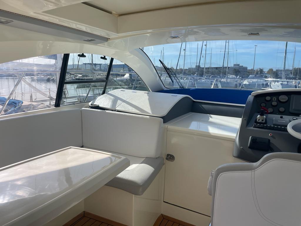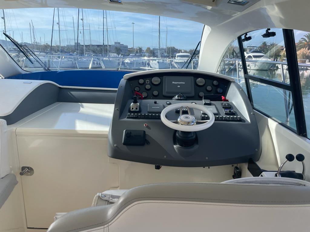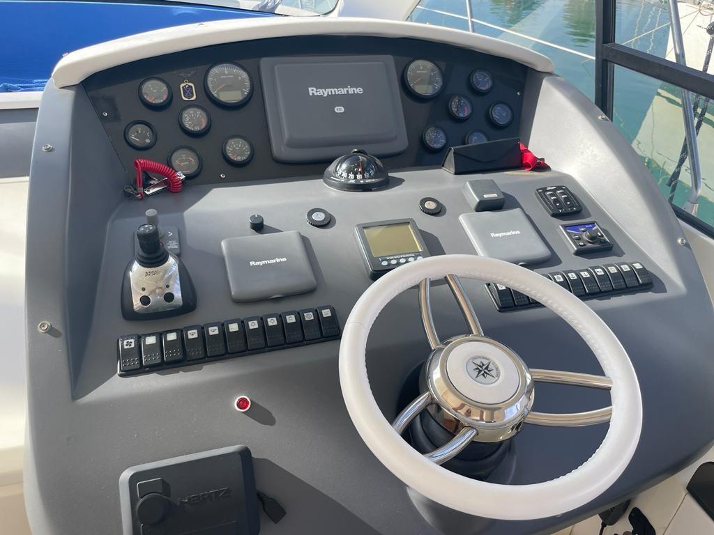 Alarme gaz, Alarme moteur, Alarme de pompe de cale, Eau sous pression, Douche de cockpit, Phare de poursuite, Flaps hydrauliques, Garage à annexe, Hard top, Extincteur(s) fixe(s), Lavage de chaine, Éclairage de courtoisie, Passerelle, Pompe de cale automatique, Pompe de cale manuelle, Cockpit en teck, Prise de quai, Connexion eau sous pression à quai, Guindeau électrique, Echelle de bain, table de cockpit, Corne.