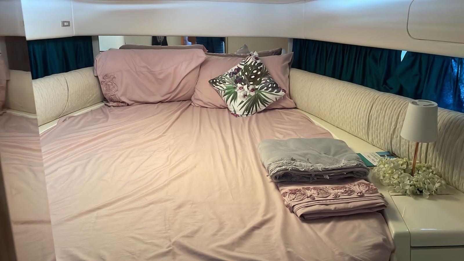 Alarme gaz, Alarme moteur, Alarme de pompe de cale, Eau sous pression, Douche de cockpit, Flaps électriques, Extincteur(s) fixe(s), Passerelle, Plateforme arrière, Pompe de cale automatique, Cockpit en teck, Prise de quai, Onduleur, Rollbar, Guindeau électrique, Echelle de bain, table de cockpit, Corne, Winch électrique avant.