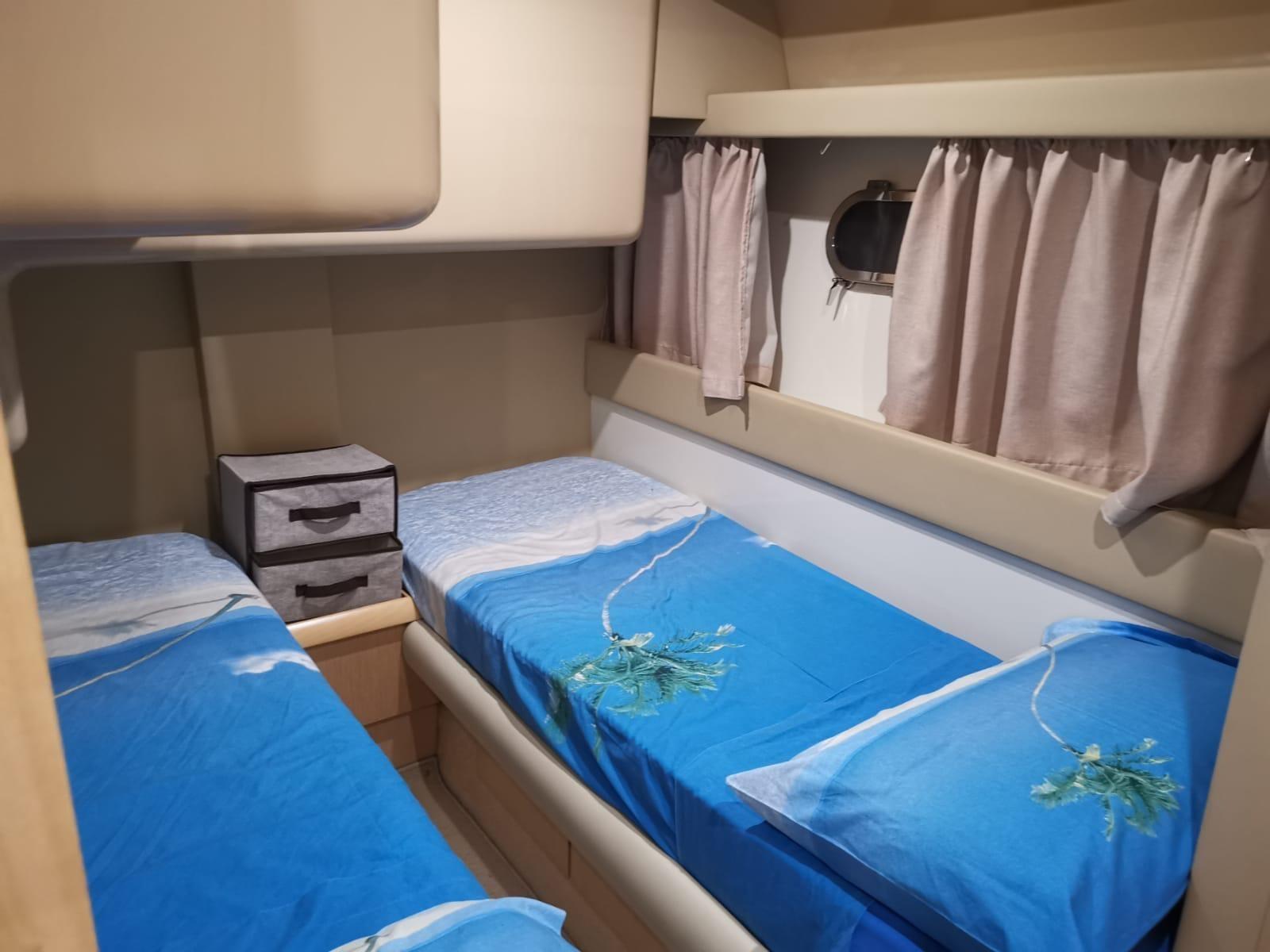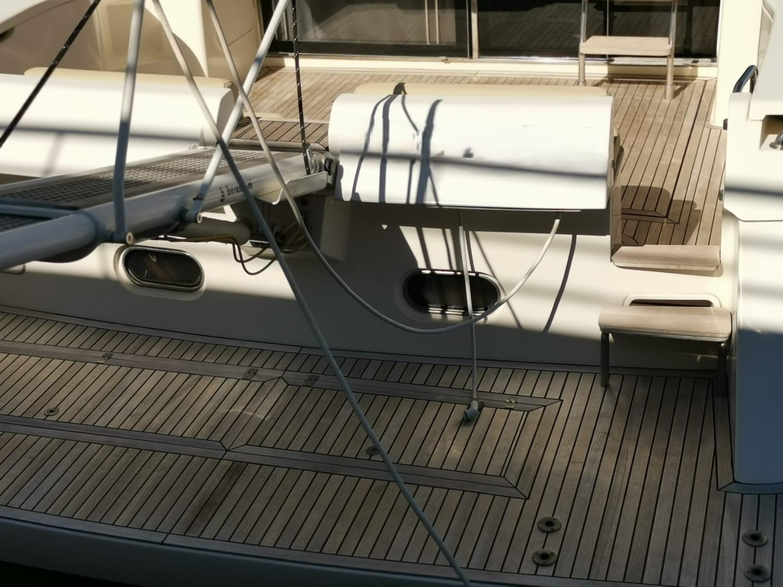 Alarme moteur, Alarme de pompe de cale, Alternateur, Eau sous pression, Douche de cockpit, Double barre à roue, Flaps hydrauliques (N°2), Extincteur(s) fixe(s), Indicateurs de flaps, Lavabo dans le cockpit, Éclairage de courtoisie, Passerelle, Plateforme arrière, Pompe de cale automatique, Pompe de cale manuelle, Cockpit en teck, Prise de quai, Onduleur, Guindeau électrique, Echelle de bain, table de cockpit, Corne, Winch électrique arrière, Winch électrique avant.
