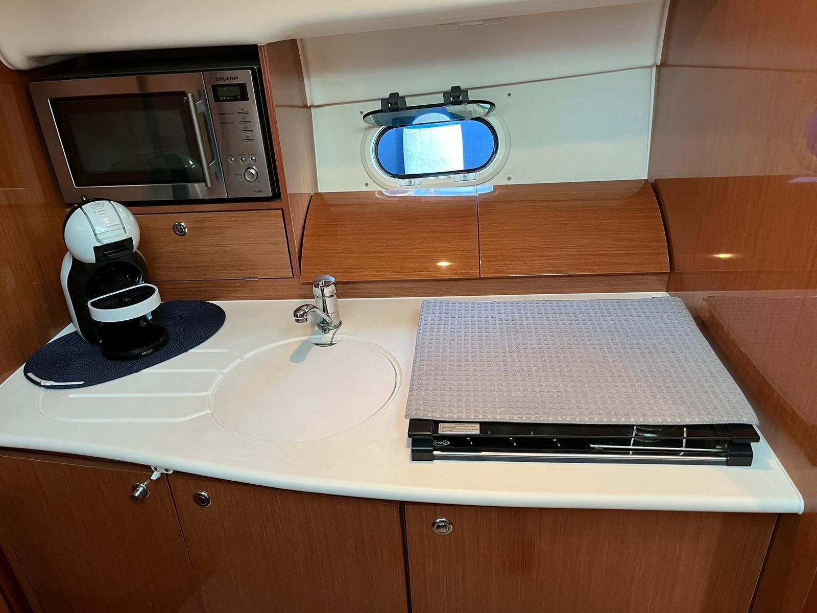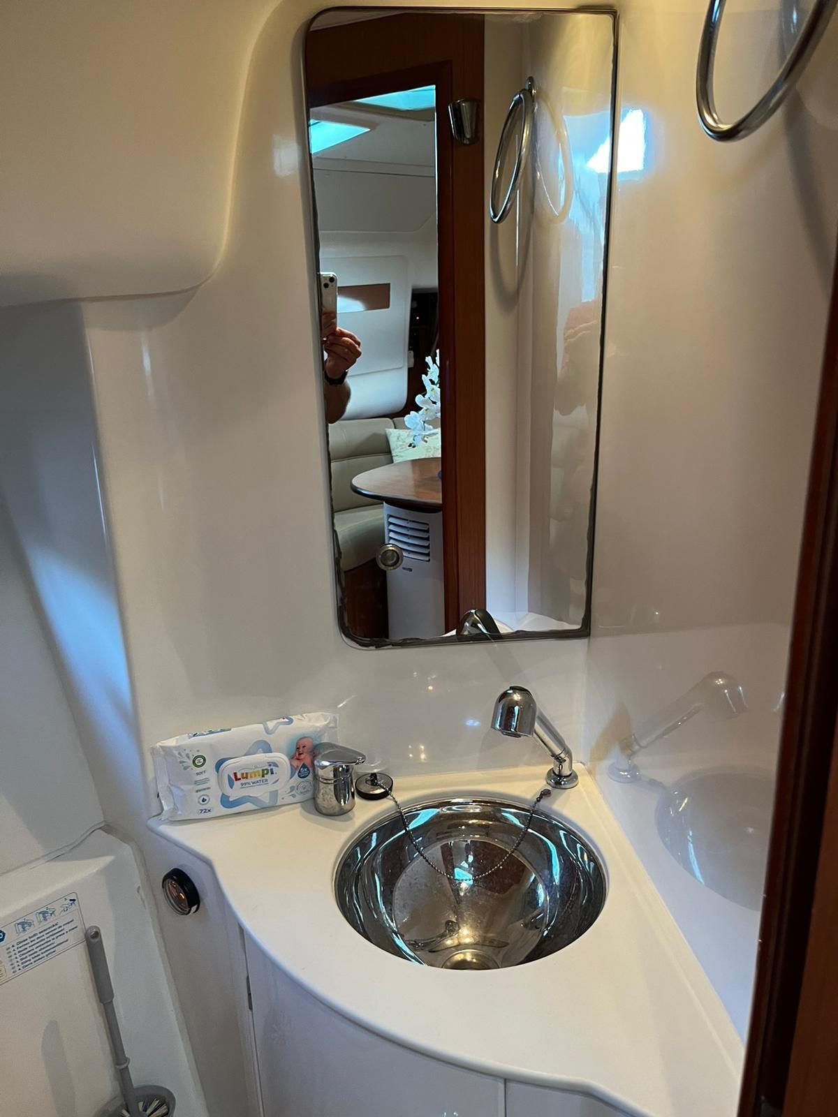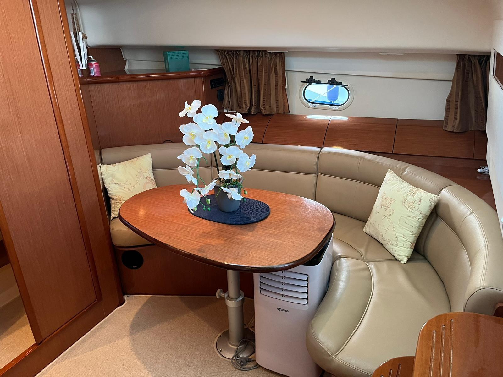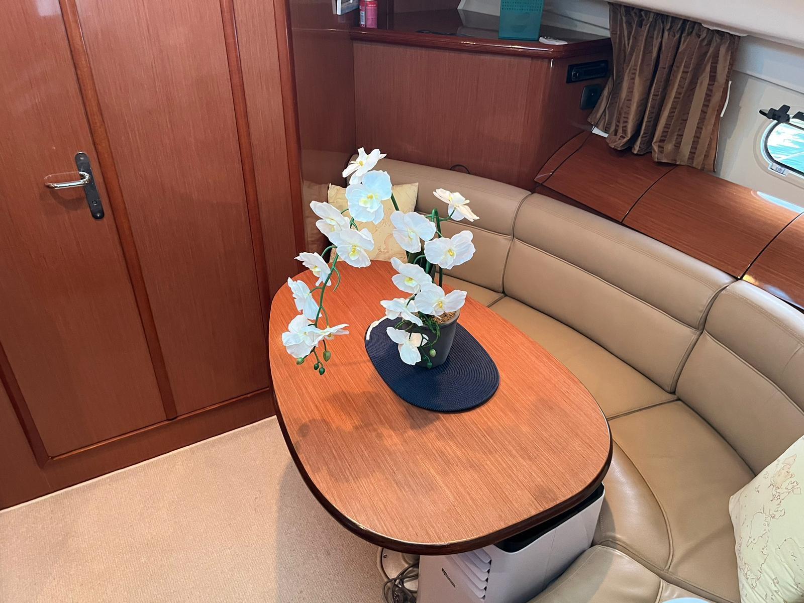 Alarme moteur, Eau sous pression, Douche de cockpit, Flaps hydrauliques, Hard top, Lavabo dans le cockpit, Éclairage de courtoisie, Plateforme arrière, Pompe de cale automatique, Pompe de cale manuelle, Cockpit en teck, Prise de quai, Connexion eau sous pression à quai, Rollbar, Guindeau électrique, Selles pour Annexe, table de cockpit, Table pliante de salon, Annexe, Corne.