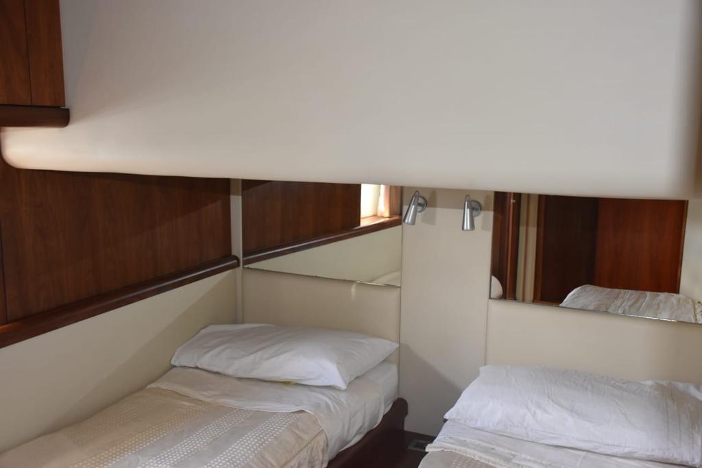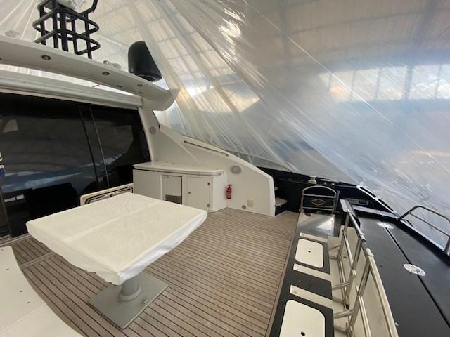 Alarme gaz, Alarme moteur, Alarme de pompe de cale, Eau sous pression, Passavant en teck, Douche de cockpit, Hélice de rechange, Flaps hydrauliques, Hard top, Extincteur(s) fixe(s), Indicateurs de flaps, Lavage de chaine, Lavabo dans le cockpit, Éclairage de courtoisie, Spots sous-marins, Passerelle, Plateforme arrière, Pompe de cale automatique, Pompe de cale manuelle, Porte latérale, Porte latérale, Cockpit en teck, Prise de quai, Connexion eau sous pression à quai, Onduleur, Rollbar, Guindeau électrique, Echelle de bain, table de cockpit, Annexe, Winch électrique arrière, Winch électrique avant.