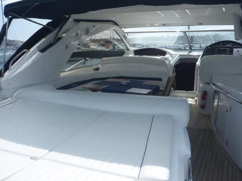 Alarme moteur, Alarme de pompe de cale, Eau sous pression, 8 Batteries, Couleur spéciale (BANDA SCAFO NERA), Douche de cockpit, Phare de poursuite, Flaps hydrauliques, Garage à annexe, Hard top, Indicateurs de flaps (DIGITALE), Éclairage de courtoisie, Passerelle (IDRAULICA A SCOMPARSA), Plateforme arrière, Pompe de cale automatique, Pompe de cale manuelle, Cockpit en teck, Prise de quai, Guindeau électrique, Echelle de bain, table de cockpit (A SCOMPARSA), Annexe, Corne, Winch électrique arrière.