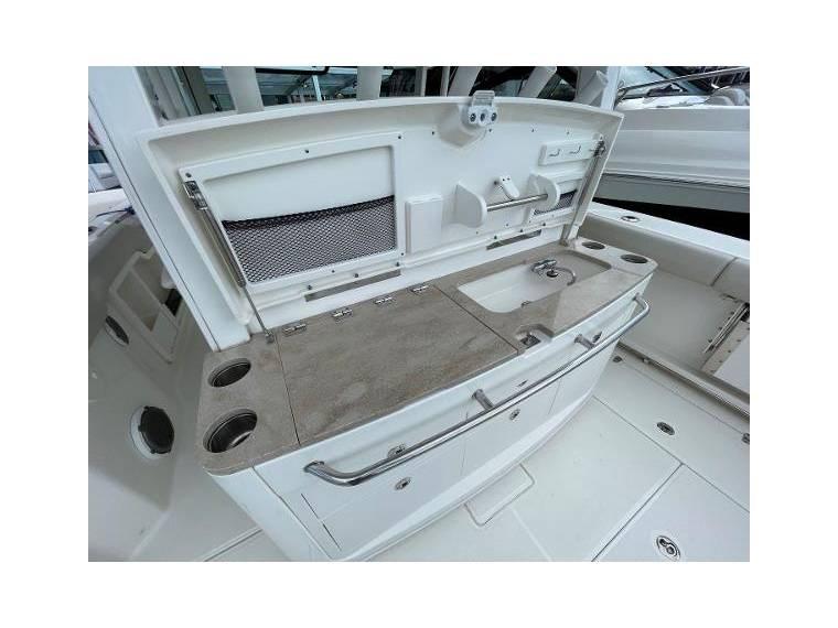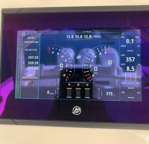 Alarme moteur, Alarme de pompe de cale, Ancre (in acciaio), Eau sous pression, Trim hydraulique, Taquets pliants, Douche de cockpit, Phare de poursuite, Flaps électriques, Lavabo dans le cockpit, Éclairage de courtoisie, Pompe de cale automatique, Pompe de cale manuelle, Prise de quai, Connexion eau sous pression à quai, Guindeau électrique, Echelle de bain, table de cockpit (e Tavolo prua elettrico), Corne.