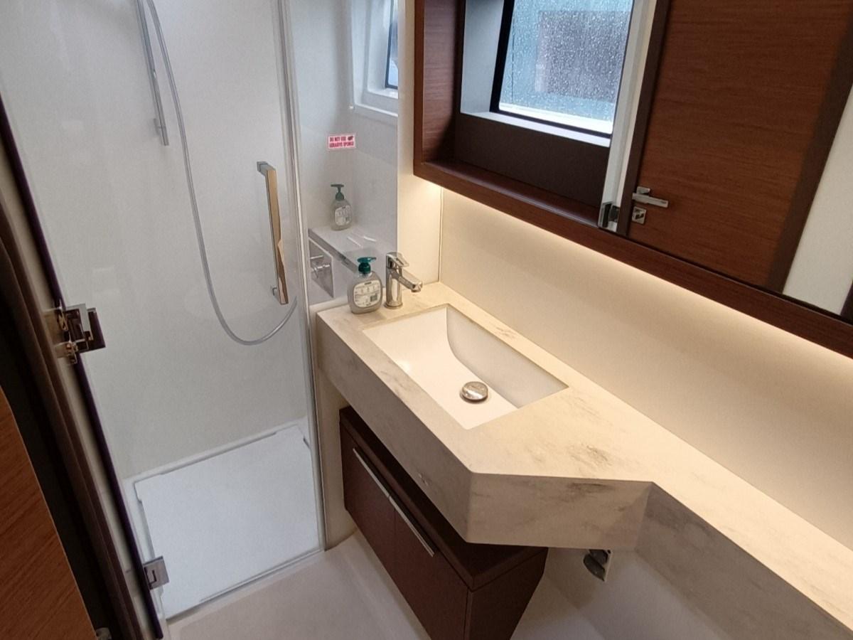 Eau Chaude, Air conditionné (65.000 BTU), Ballon d'eau chaude, Dessalinisateur (200 l/h), Indicateur du réservoir de carburant, Jauge de Réservoir d’Eau, Convertisseur (2000w), Plancher intérieur en bois, Chauffage (WEBASTO), Toilettes électriques.