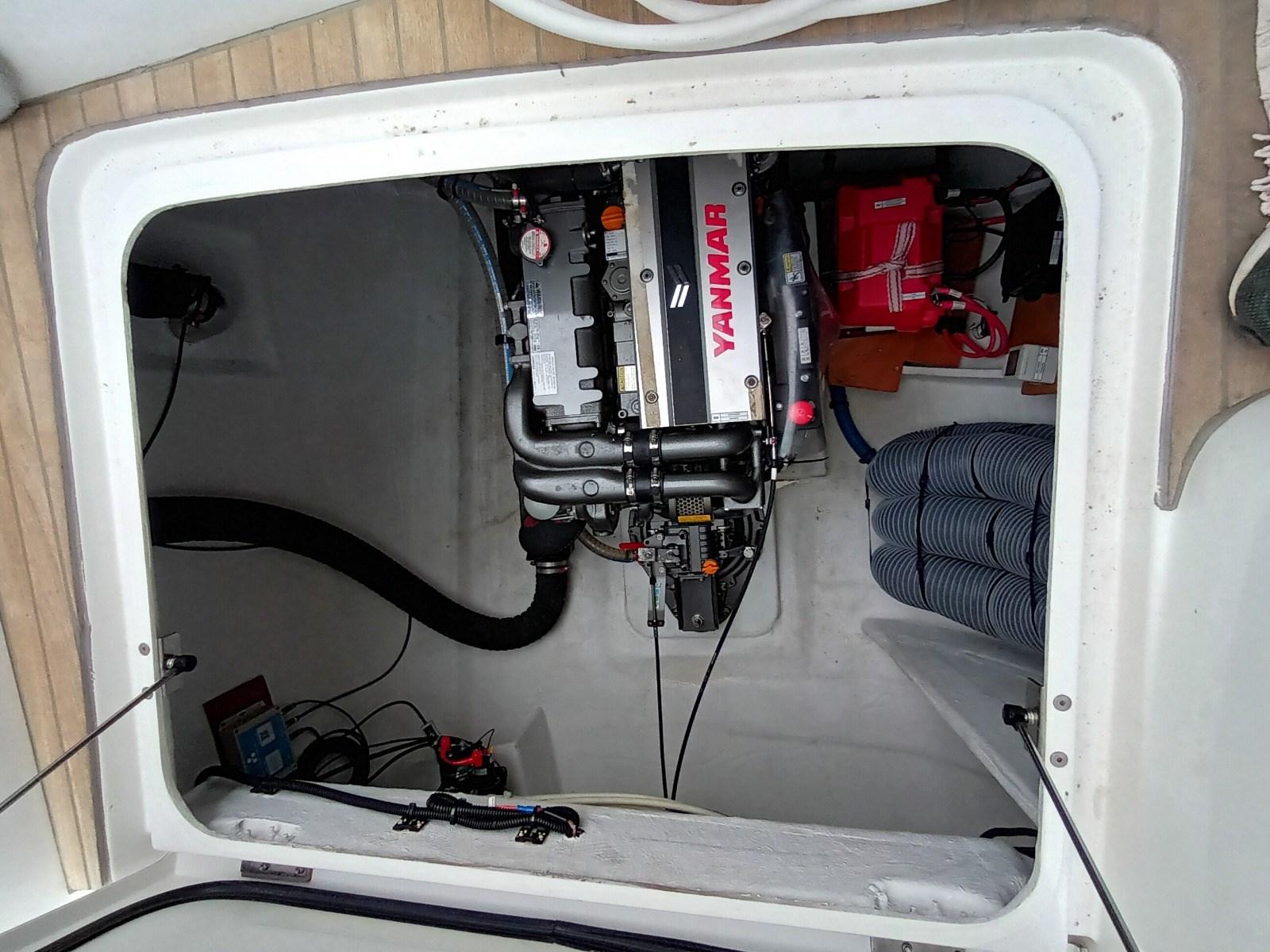 Alarme moteur, Alarme de pompe de cale, Alternateur, 2 Ancre (45kg con 90m - con 20m), Eau sous pression, Douche de cockpit, Bossoirs pour annexe, Lavabo dans le cockpit, Moteur hors-bord pour annexe (6 hp), Passerelle (idraulica), Pompe de cale automatique, Porte latérale, Cockpit en teck, Prise de quai, Connexion eau sous pression à quai, Guindeau électrique, Gréement monotoron, Echelle de bain, table de cockpit, Annexe (3.60m), Windex.