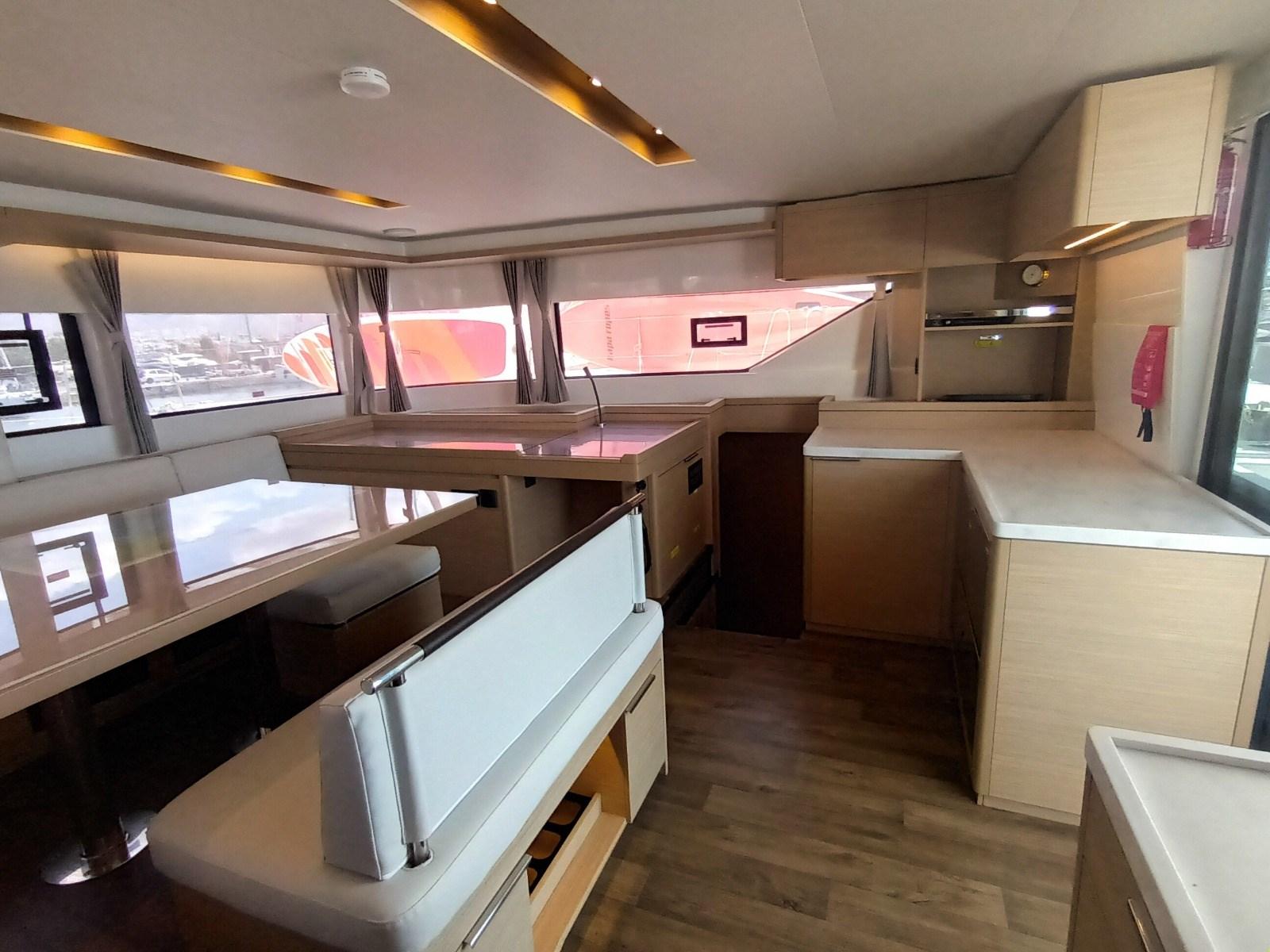 Eau Chaude, Air conditionné (65.000 BTU), Ballon d'eau chaude, Dessalinisateur (200 l/h), Indicateur du réservoir de carburant, Jauge de Réservoir d’Eau, Convertisseur (2000W), Prises interieures 12v, Prises interieures 220v, Chauffage (WEBASTO), Toilettes électriques.