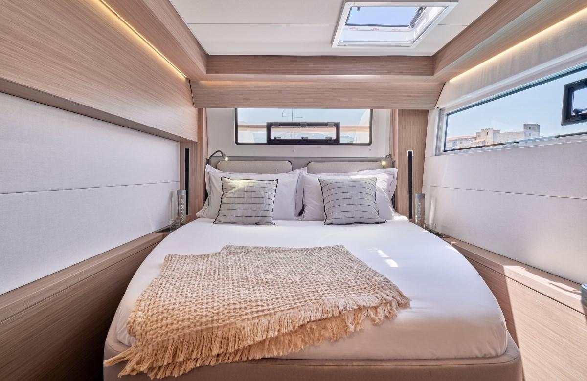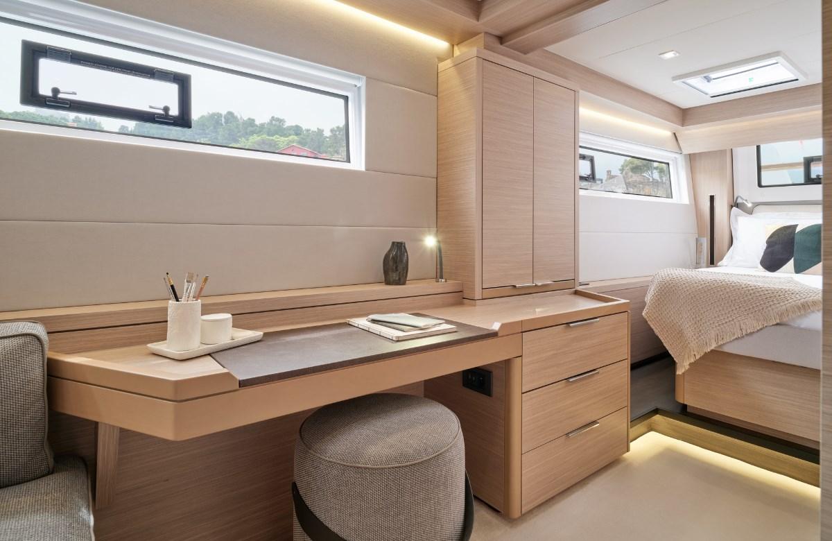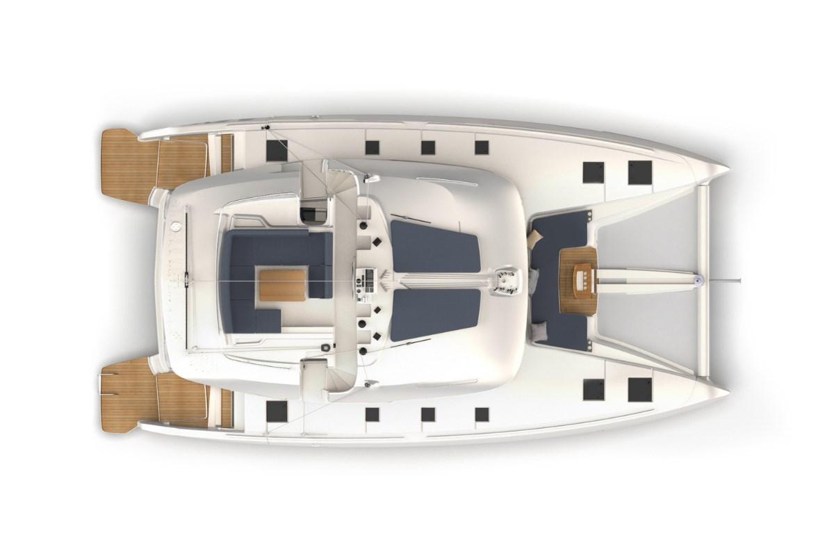 Pour le Lagoon 51, déjà équipé de panneaux solaires praticables même dans la version standard, il permet un ajout supplémentaire de panneaux solaires XXL sur le rouf. Cette technologie fournit plus de 3400 watts de puissance pour faire fonctionner tous les services à bord. Le nouveau Lagoon 51 est donc complètement autonome (sauf pour la climatisation). Les panneaux solaires s’intègrent parfaitement dans les lignes du catamaran et ne perturbent pas la vie à bord. Le flybridge et les bains de soleil du rouf sont accessibles et utilisables aussi bien en présence qu’en l’absence de panneaux solaires.