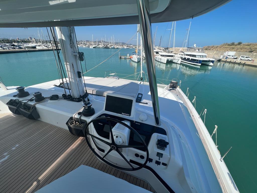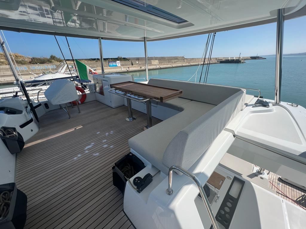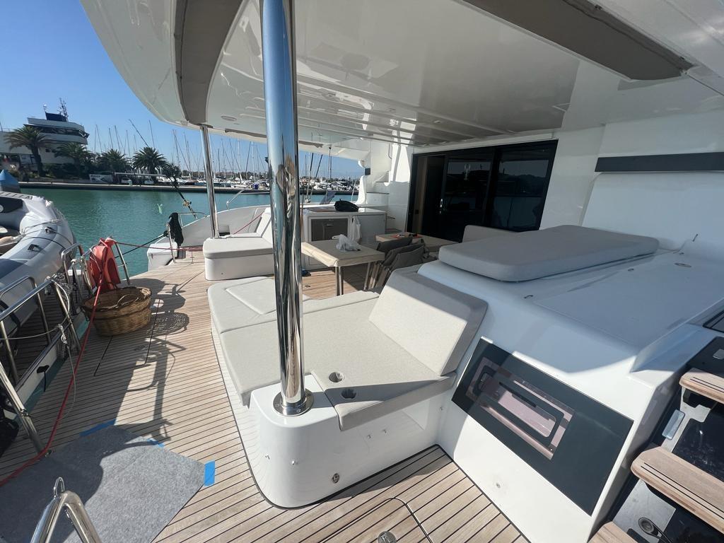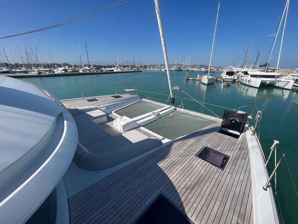 Alarme gaz, Alarme moteur, Alarme de pompe de cale, Eau sous pression, 4 Batteries (GEL DA 210AH), Passavant en teck, Douche de cockpit, Phares fixes arrière, Lavabo dans le cockpit, Éclairage de courtoisie, 4 Spots sous-marins (BLU), Passerelle (CARBONIO 260), Pompe de cale automatique, Pompe de cale manuelle, Porte latérale, Cockpit en teck, Prise de quai, Connexion eau sous pression à quai, Guindeau électrique, Gréement monotoron, Echelle de bain, Selles pour Annexe (PIATTAFORMA IDRAULICA CON TELECOMANDO), table de cockpit, Annexe (HIGHFIRLD CL420 GREY + HONDA 40/60), 3 Winch électrique, Windex.