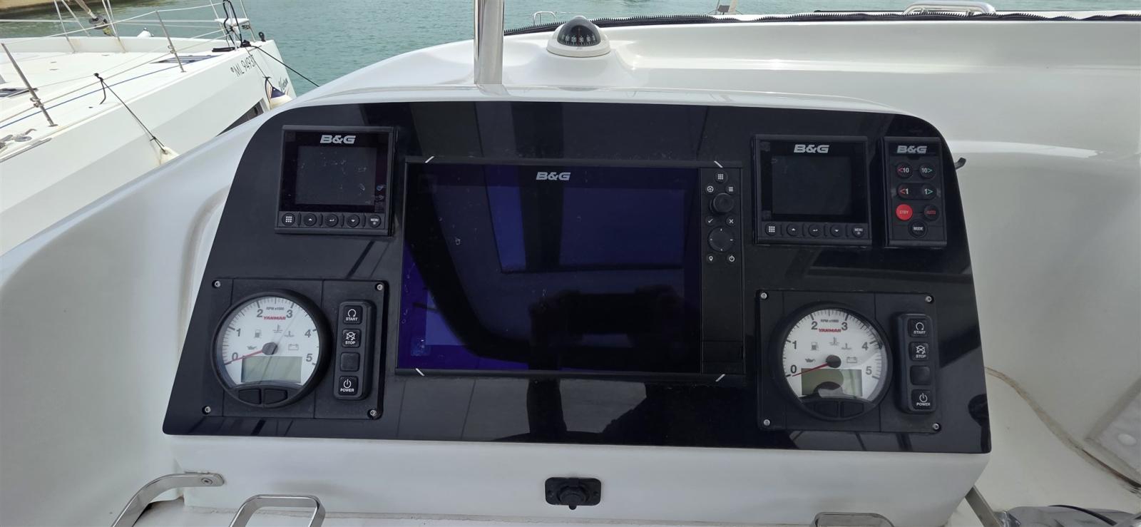 AIS (IN/OUT 2024), Compteur de chaîne (con telecomando), Moniteur (DOMOTIC DISPLAY), Sondeur pêche (B&G), Loch (B&G), Plotter GPS (B&G 12”), Radio VHF (B&G 2024), Anémomètre/Girouette (B&G).