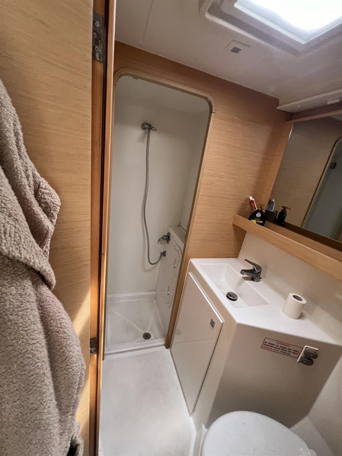 Dessalinisateur (Schenker 60 L/h), Plancher intérieur en bois, Prises interieures 12v, Prises interieures 220v, Réservoir d'eau noire, 4 Toilettes électriques.