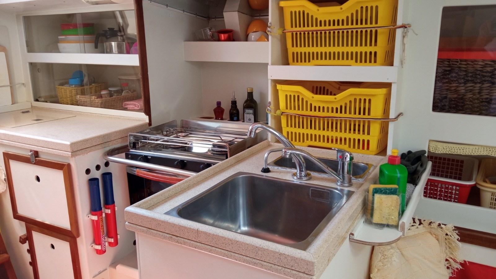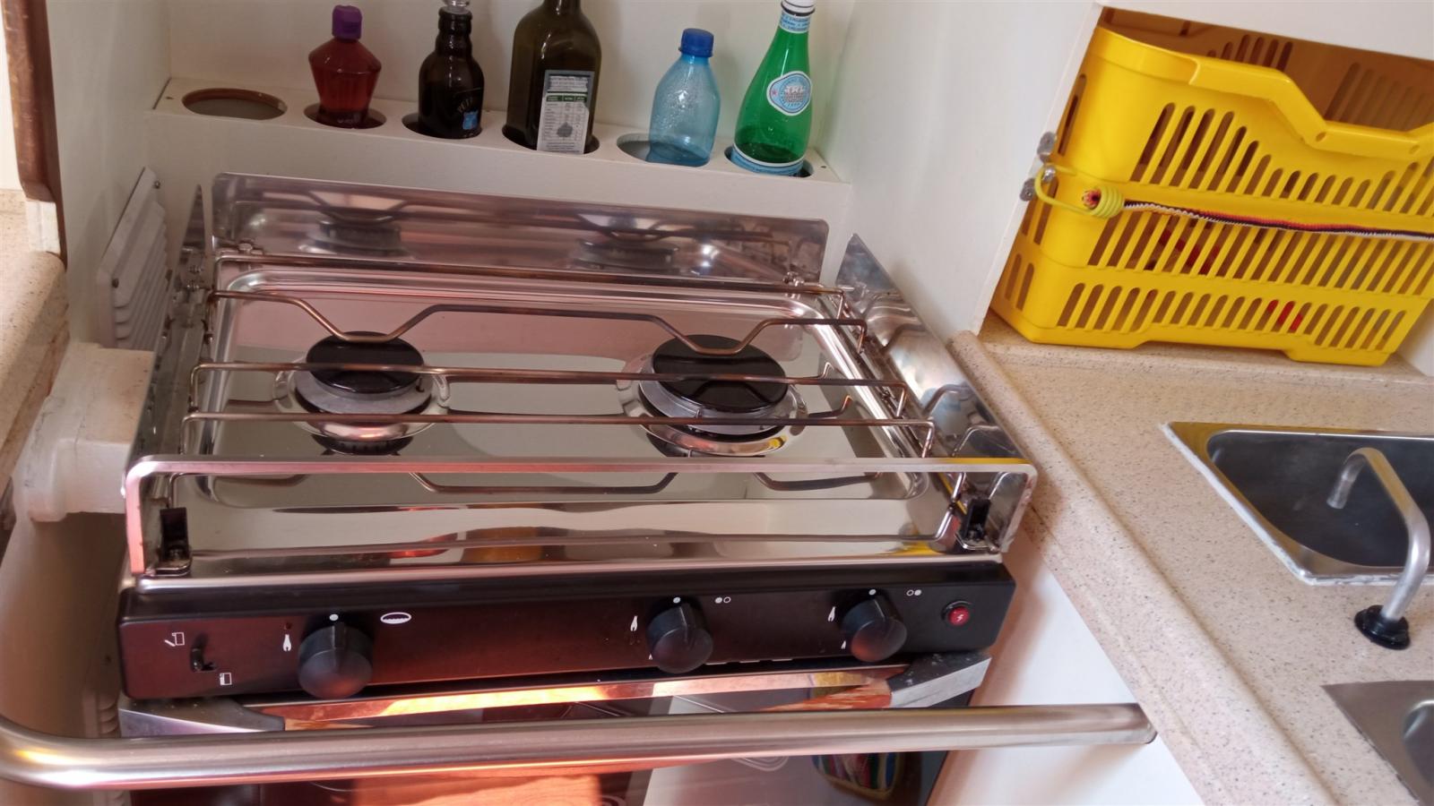 Cuisine (A GAS ENO BASCULANTE CON 2 FUOCHI), Réfrigérateur intérieur (A POZZETTO).