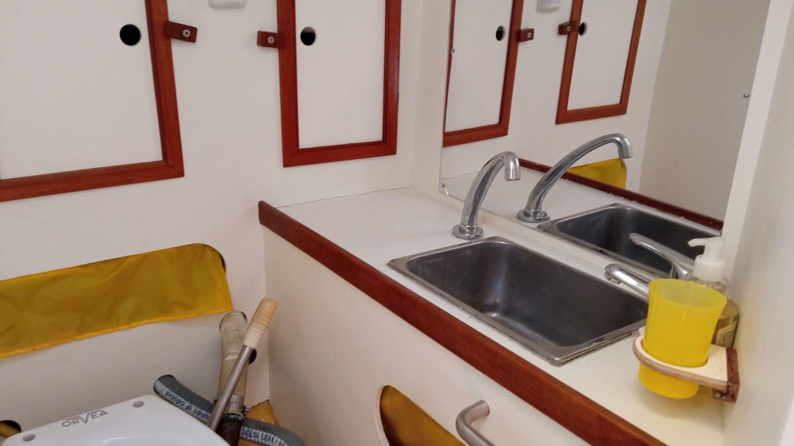 Ballon d'eau chaude (220V + SCAMBIATORE DI CALORE), Dessalinisateur (SHENKER 50 L/H 2023), Convertisseur (1500W), 2 Chauffage (WEBASTO DA 5000 CAL + 2000 CAL IN TUTTA LA BARCA).
