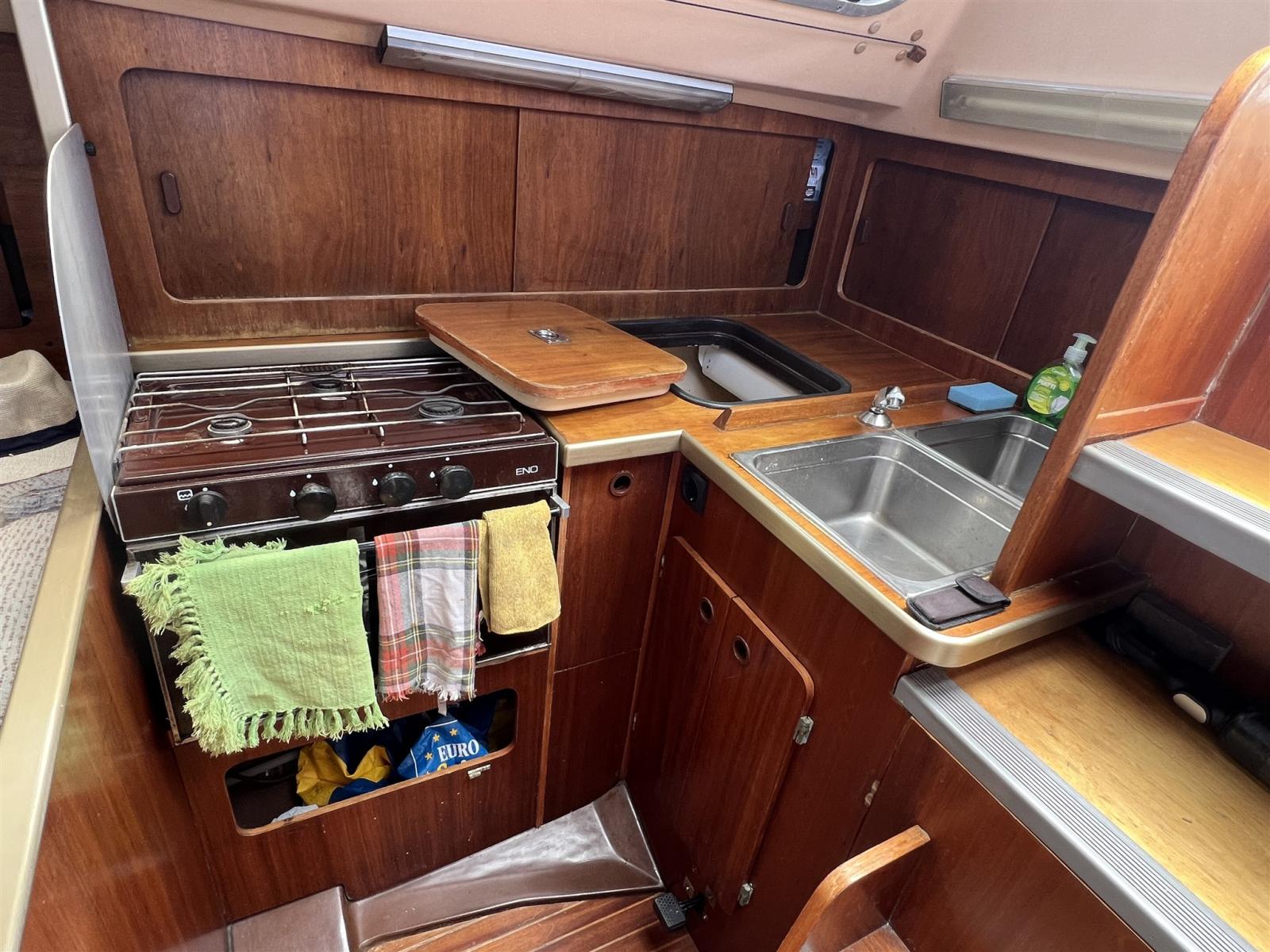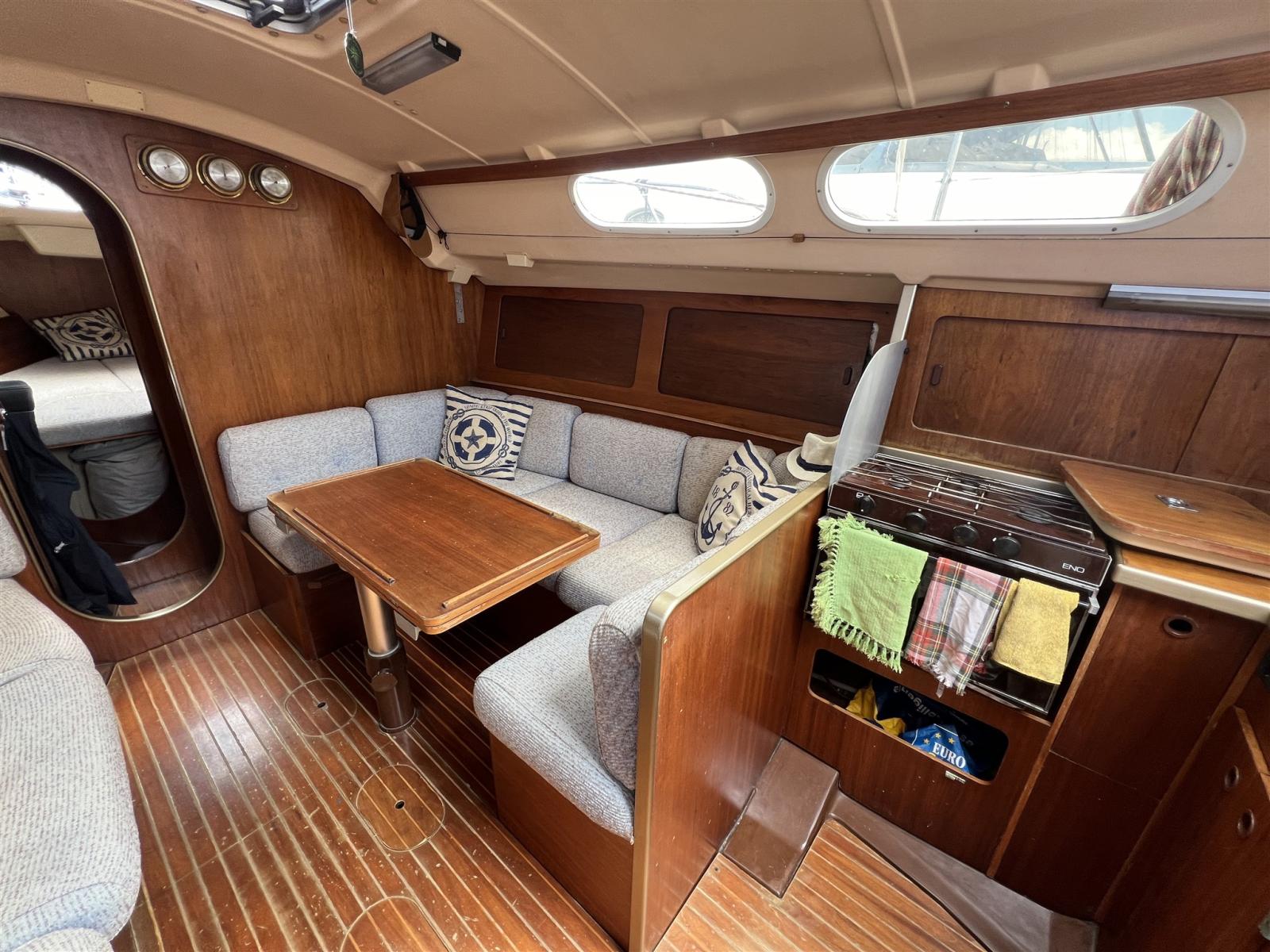 Eau sous pression, Douche de cockpit, Pompe de cale manuelle, Cockpit en teck, Prise de quai, Guindeau électrique, Gréement monotoron, Echelle de bain.