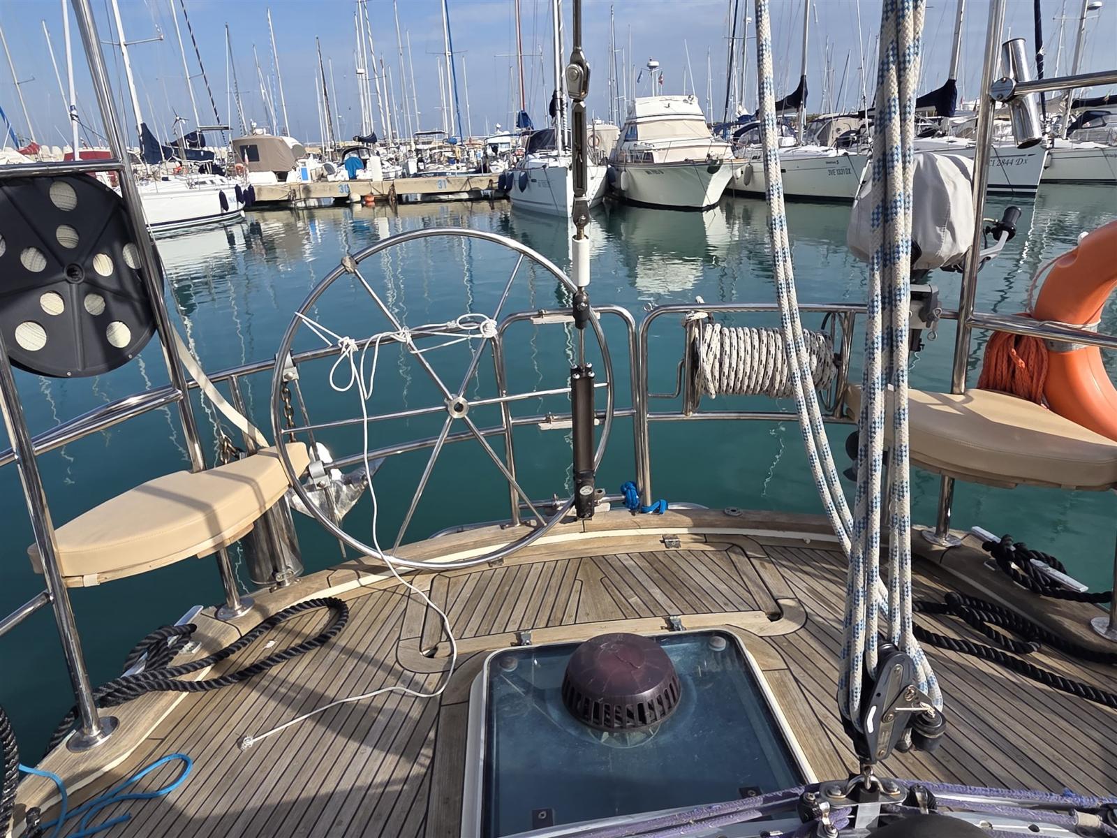 2 Ancre (CQR 15KG CON 50MT DI CATENA A PRUA - 10KG A POPPA), Eau sous pression, 3 Batteries (2023), Passavant en teck, Câble d’alimentation à quai, Moteur hors-bord pour annexe (HONDA 2.3 CV), 2 Panneau solaire (CON CONTROLLO BLUETOOTH (2025)), 2 Pompe de cale automatique (2024), Pont en teck (2017), Cockpit en teck (2017), Prise de quai, Guindeau électrique (CON COMANDI A PULSANTE + TELECOMANDO), Gréement monotoron (2017), table de cockpit, Annexe (2.20MT CON CHIGLIA GONFIABILE (2020)), 5 Winch (LEWMAR 2 x 52 - 3 x 40), Windex.