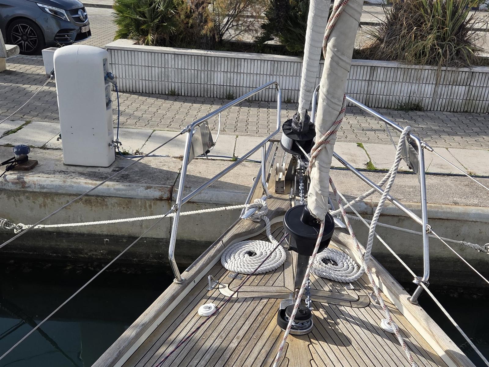 AIS, ancre arrière 10kg (2017), ancre avant CQR 15kg (2024), Autoclave, batteries (2023), Bimini avec couverture (2025), boussole (SPINLOCK), coussins de cockpit (2024), sondeur de profondeur, GPS (RAYMARINE), indicateur de réservoir d’eau (2023), Indicateur de réservoir diesel (2023), feux de navigation (2025), matelas (2023), panneaux solaires (2025), pilote automatique (RAYMARINE - 2024), traceurs (RAYMARINE - 2023), pompe autoclave (2023), pompes de cale automatiques (2024), Pont en teck (2017), cockpit en teck (2017), robinets de mer (2023), radio VHF (RAYMARINE RAY 60 - 2017), gréement et gréement (2017), répéteur VHF à la barre (2023), enroulement Genoa (HARKEN 2017), foc de voile d’avant Genoa (HARKEN 2017), guindeau d’ancre électrique (2017) avec télécommande (2023), spinnaker avec perche de spinnaker, hothotte (2024), station à vent Tridata (RAYMARINE), quilts de poupe (2024), Rembourrage intérieure (2024), Tender (2020) avec hors-bord (HONDA - 2024), toilettes électriques (2024), treuil LEWMAR (5)