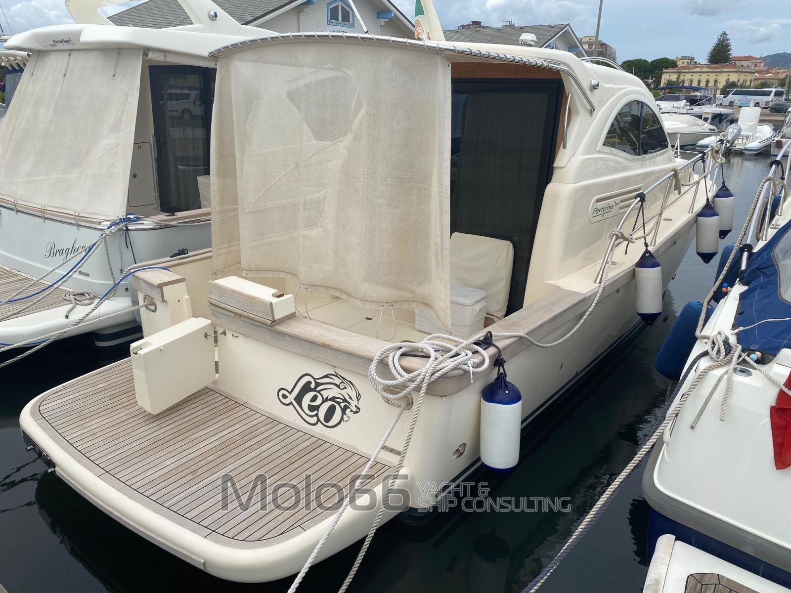 Alarme moteur, Alarme de pompe de cale, Eau sous pression, Douche de cockpit, Flaps hydrauliques, Hard top, Extincteur(s) fixe(s), Indicateurs de flaps, Éclairage de courtoisie, Plateforme arrière, Porte latérale, Prise de quai, Guindeau électrique, Echelle de bain, Table pliante de salon, Corne.