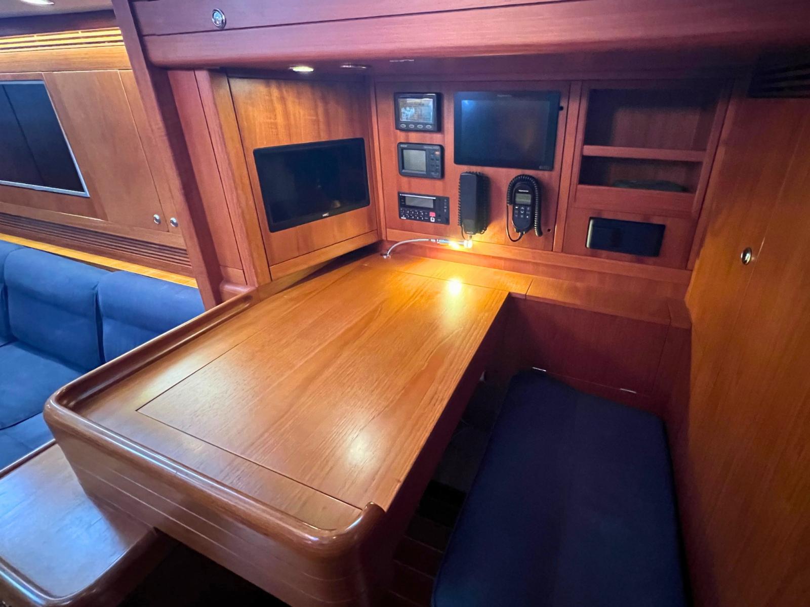 Depuis 2018 à ce jour, le bateau a subi d’importants travaux de modernisation, incluant le remplacement du moteur Cummins, la rénovation du teck du pont, l’installation d’un système électrique avec batteries lithium Victron, un refroidisseur inverter, la climatisation et la machine à eau. Le mât en carbone et la bâche Offshore Spars récemment repeints contribuent à maintenir de hautes performances à la voile.