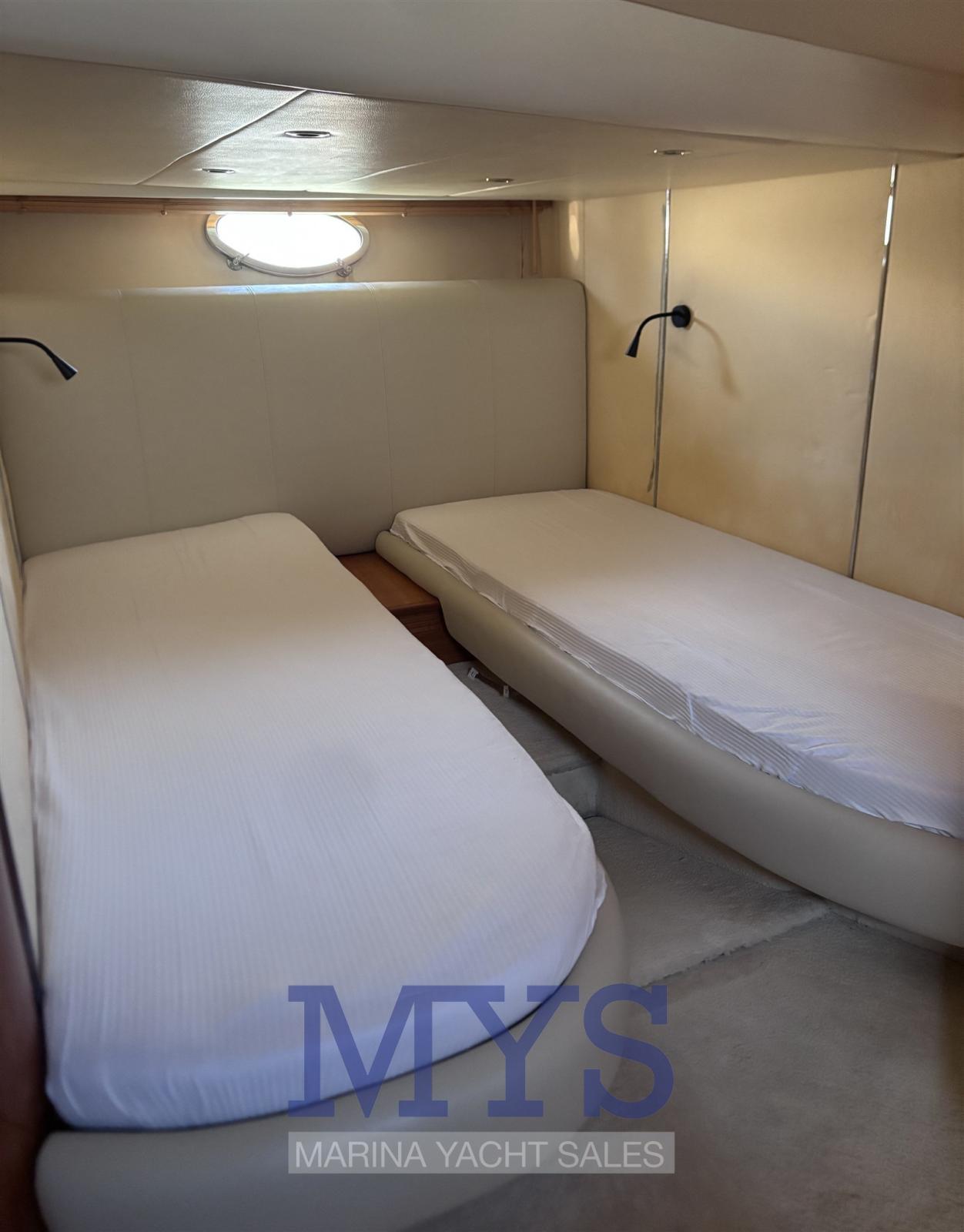 Eau sous pression, Douche de cockpit, Flaps hydrauliques (N°2), Garage à annexe, Hard top, Extincteur(s) fixe(s), Moniteur de batterie, Plateforme arrière, Cockpit en teck, Guindeau électrique, Echelle de bain, table de cockpit.