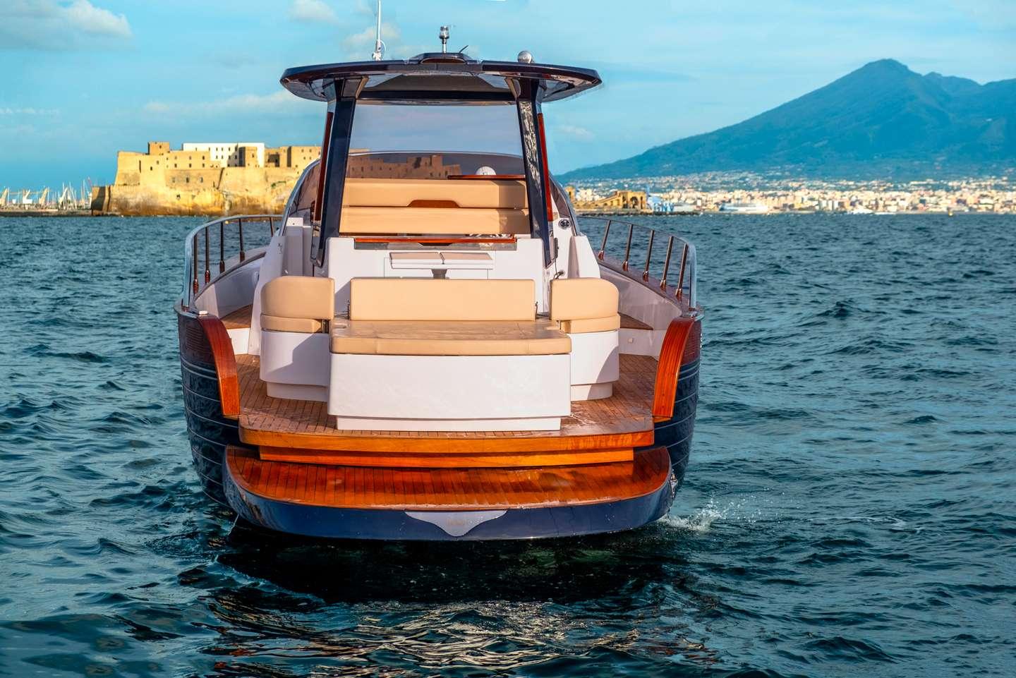 Le seul Gozzo au monde à disposer d'un garage à annexe/jouets nautiques à l'arrière et à atteindre 30 nœuds.