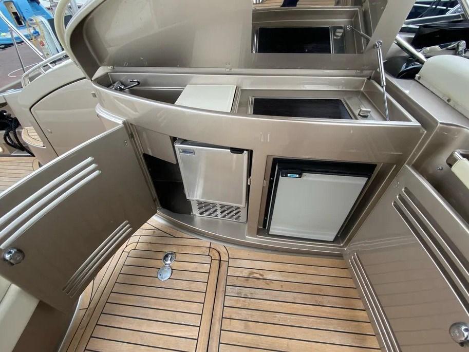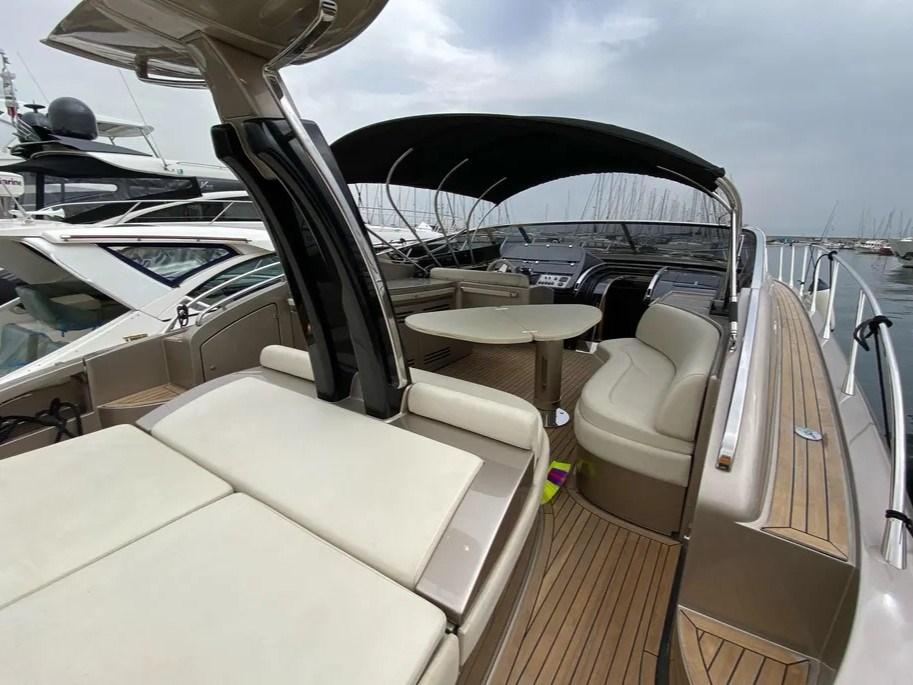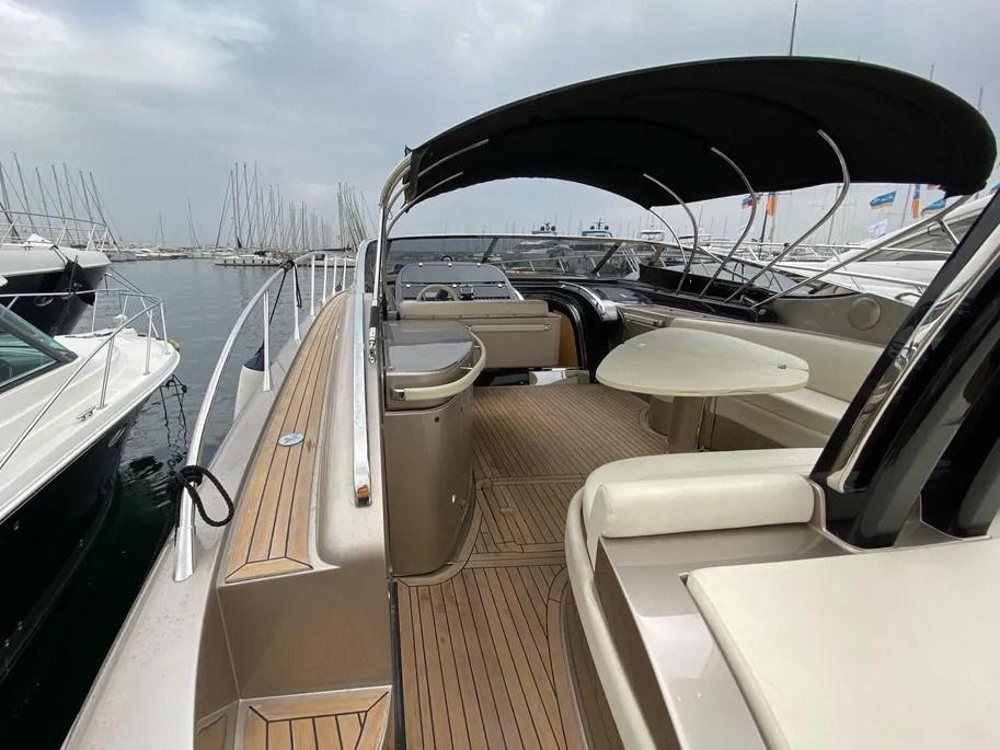 Alarme moteur, Alarme de pompe de cale, Alternateur, Eau sous pression, Batteries (NUOVE), Passavant en teck, Douche de cockpit, Garage à annexe, Lavabo dans le cockpit, Passerelle (IDRAULICA), Pompe de cale manuelle, Pont en teck, Cockpit en teck, Prise de quai, Connexion eau sous pression à quai, Guindeau électrique, Echelle de bain, table de cockpit, Annexe (IDROGETTO AVON for RIVA).