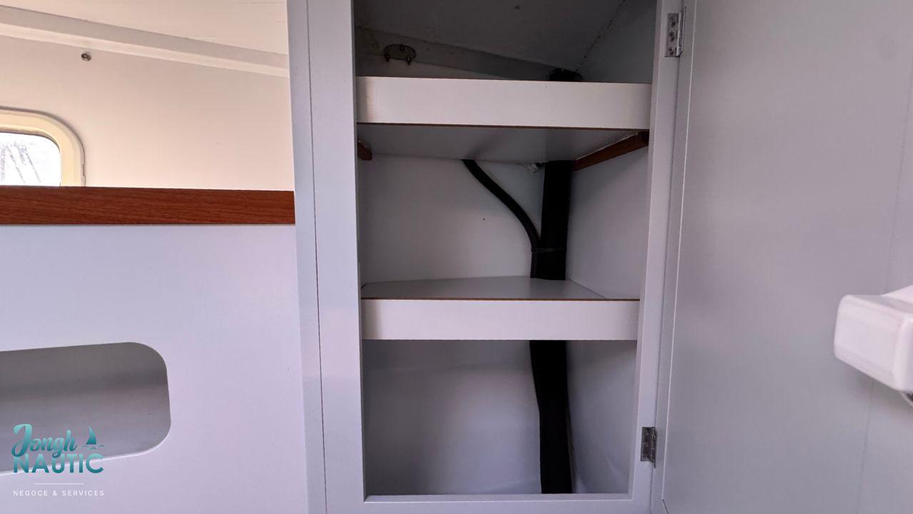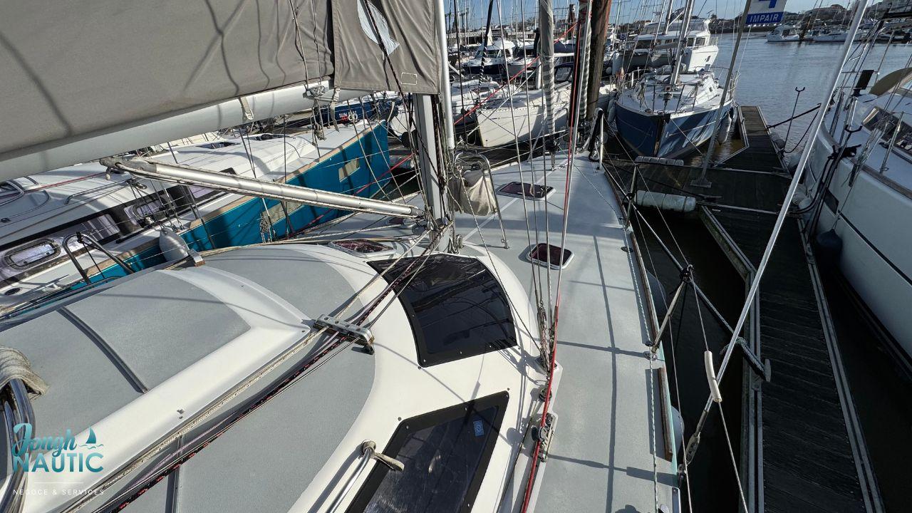 L’intérieur, lumineux et chaleureux, se distingue par de beaux volumes, une circulation fluide, et de nombreux rangements. Le carré spacieux, la cuisine fonctionnelle et les cabines confortables permettent de profiter pleinement de la vie à bord sur de longues navigations ou en croisière côtière.