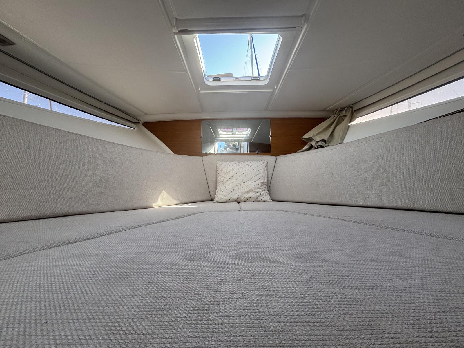 Guindeau électrique télécommandé, taud en bon état, douche de pont, cockpit spacieux et modulable.