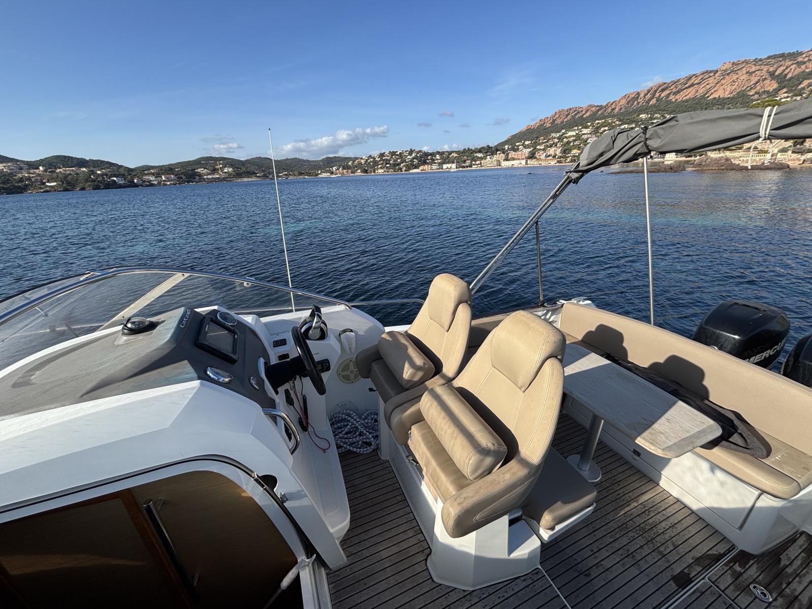 Cap Camarat 8.5 WA de 2013 en très bon état général. Équipé d’une double motorisation Mercury Verado 225 avec seulement 311h et 312h. Bateau performant, stable et polyvalent, idéal pour la plaisance à la journée comme pour les croisières côtières. Équipement complet : GPS Lowrance HDS9, VHF, flaps, guindeau électrique télécommandé, prise de quai 220V avec convertisseur, frigo intérieur, chauffe-eau, douche de pont et toilettes manuelles. Un modèle reconnu pour son confort, sa qualité de navigation et sa polyvalence.
