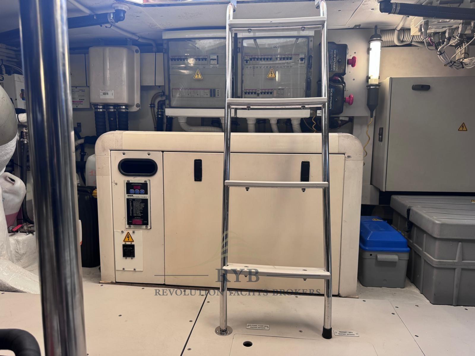 Eau sous pression, Passavant en teck, Douche de cockpit, Double barre à roue, Phare de poursuite, Flaps hydrauliques, Éclairage de courtoisie, Passerelle (OPACMARE), Plateforme arrière, Porte latérale, Cockpit en teck, Prise de quai, Répétiteur électronique, Rollbar, Guindeau électrique, Echelle de bain, table de cockpit, Corne, Winch électrique arrière, Winch électrique avant.