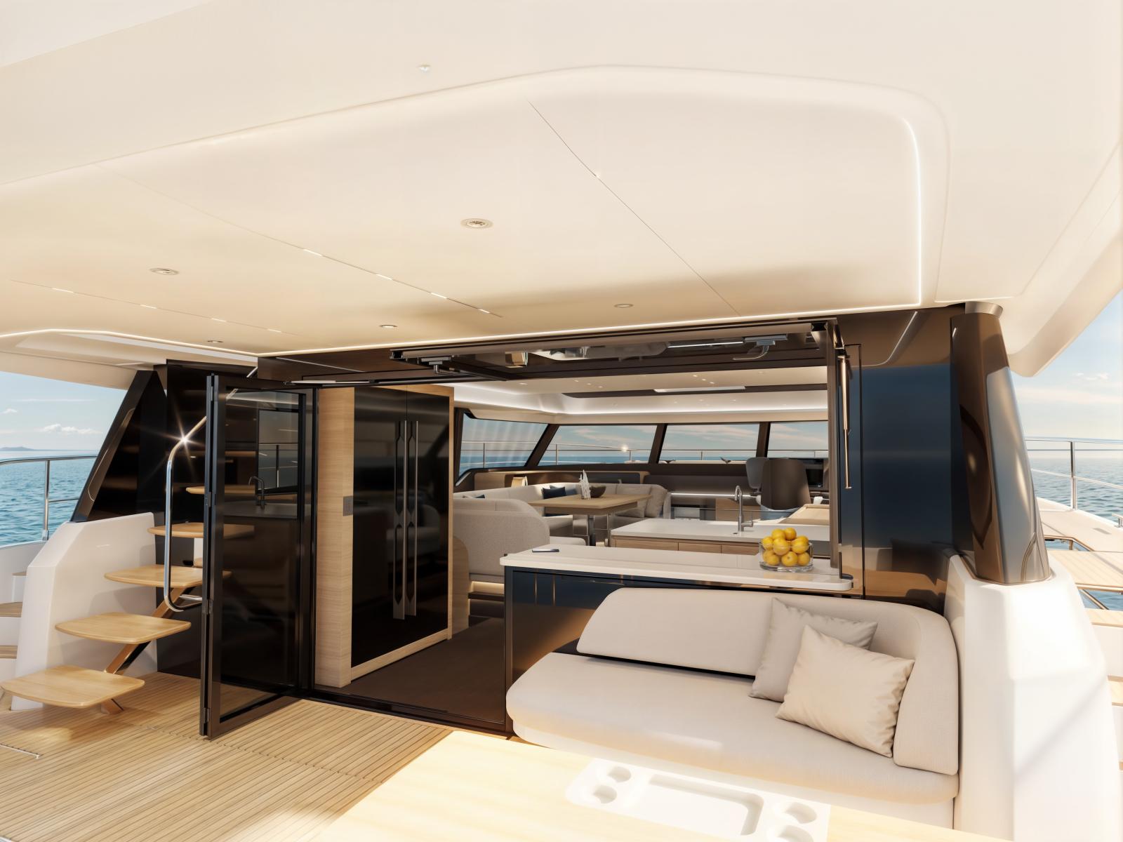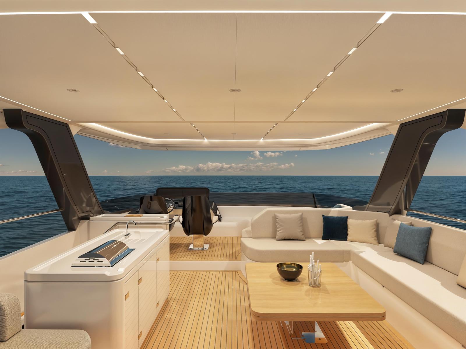À bord, tout est pensé pour le confort absolu : un salon lumineux baigné de lumière naturelle, un flybridge panoramique aux proportions généreuses, des cabines au standing hôtelier, et une circulation fluide entre les différents espaces. Le VEYA 53 propose une expérience de croisière digne des plus grands yachts, dans un format optimisé pour la liberté