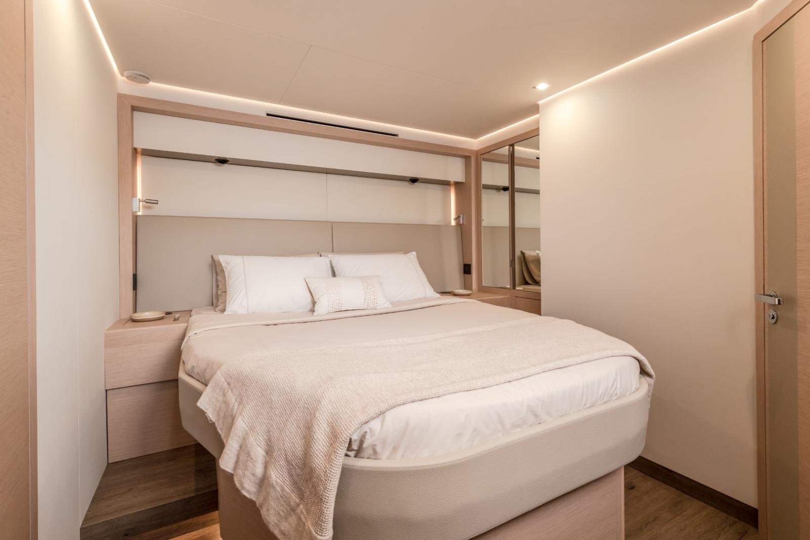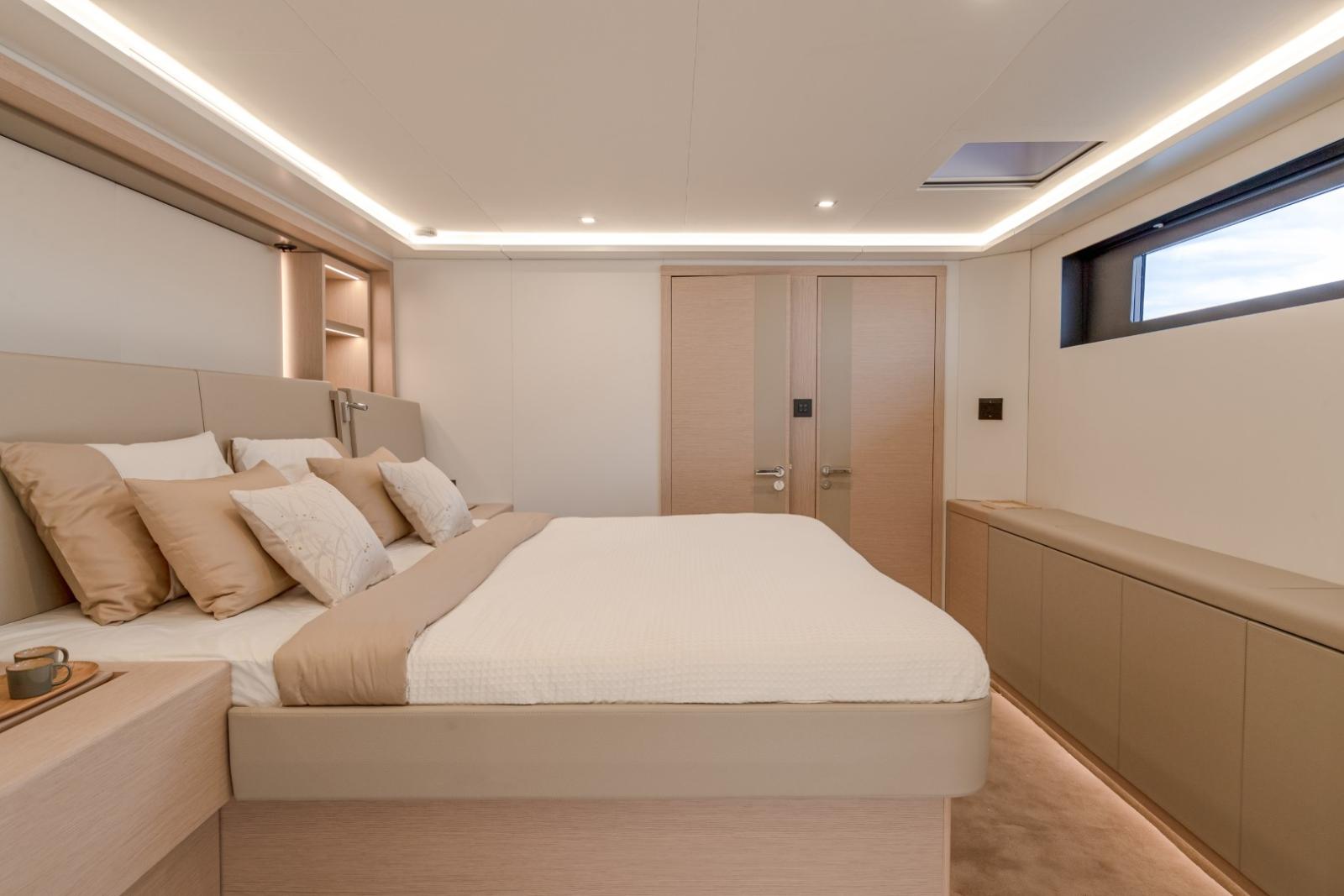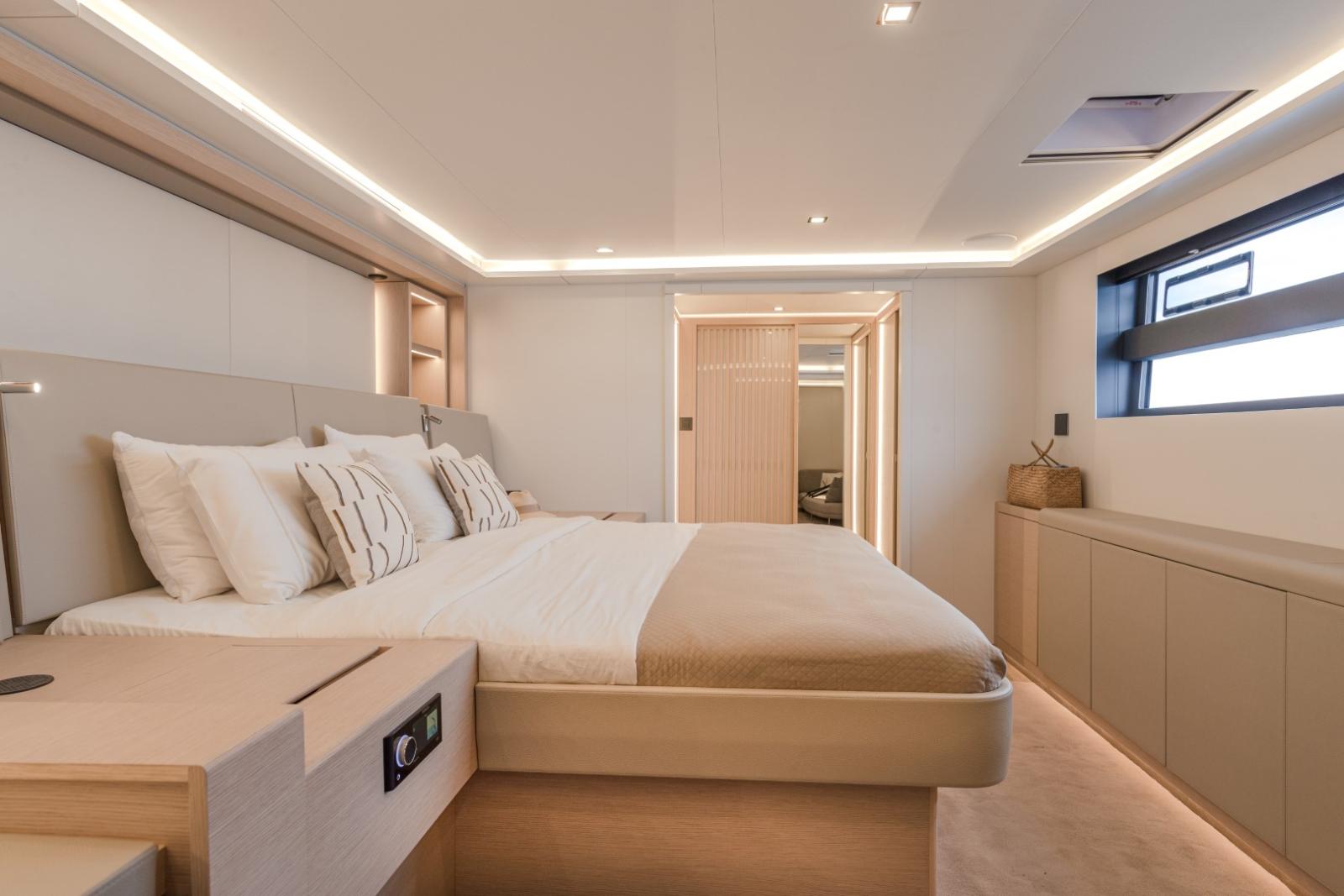 Avec près de 24 m de longueur hors tout et plus de 11 m de largeur, il combine élégance, volumes généreux et technologies avancées pour offrir une expérience de navigation exceptionnelle. Son design se distingue par des lignes harmonieuses, de vastes hublots panoramiques et des espaces modulables inspirés du monde des superyachts.