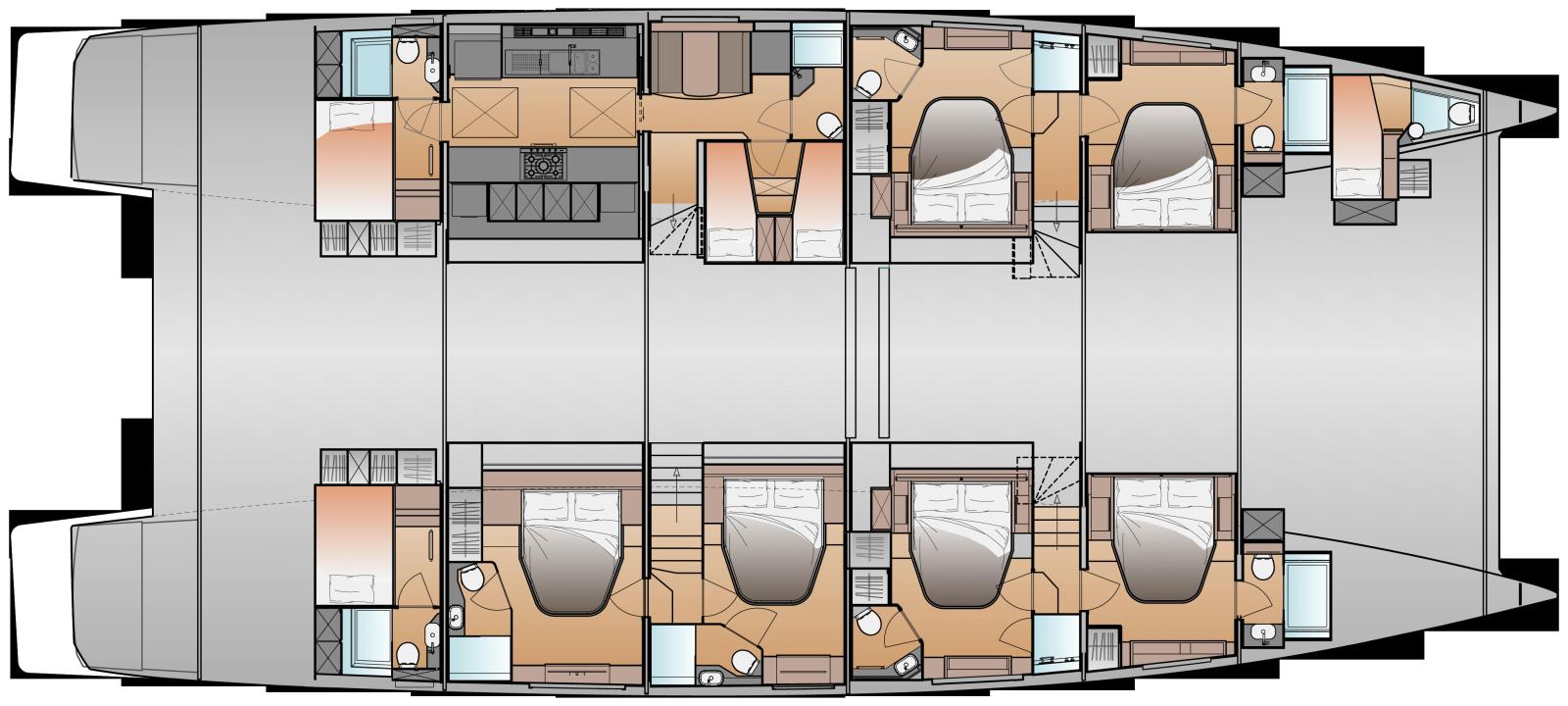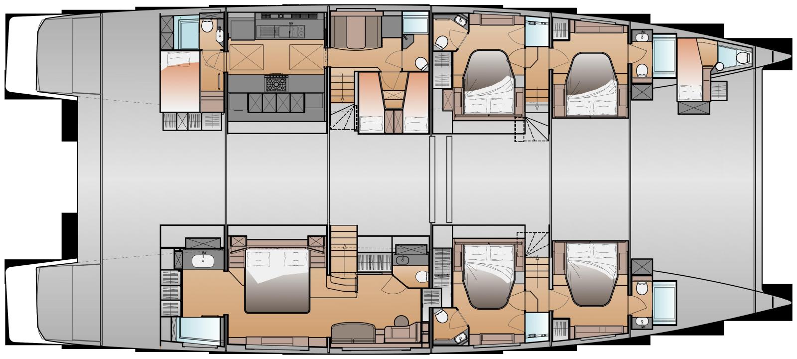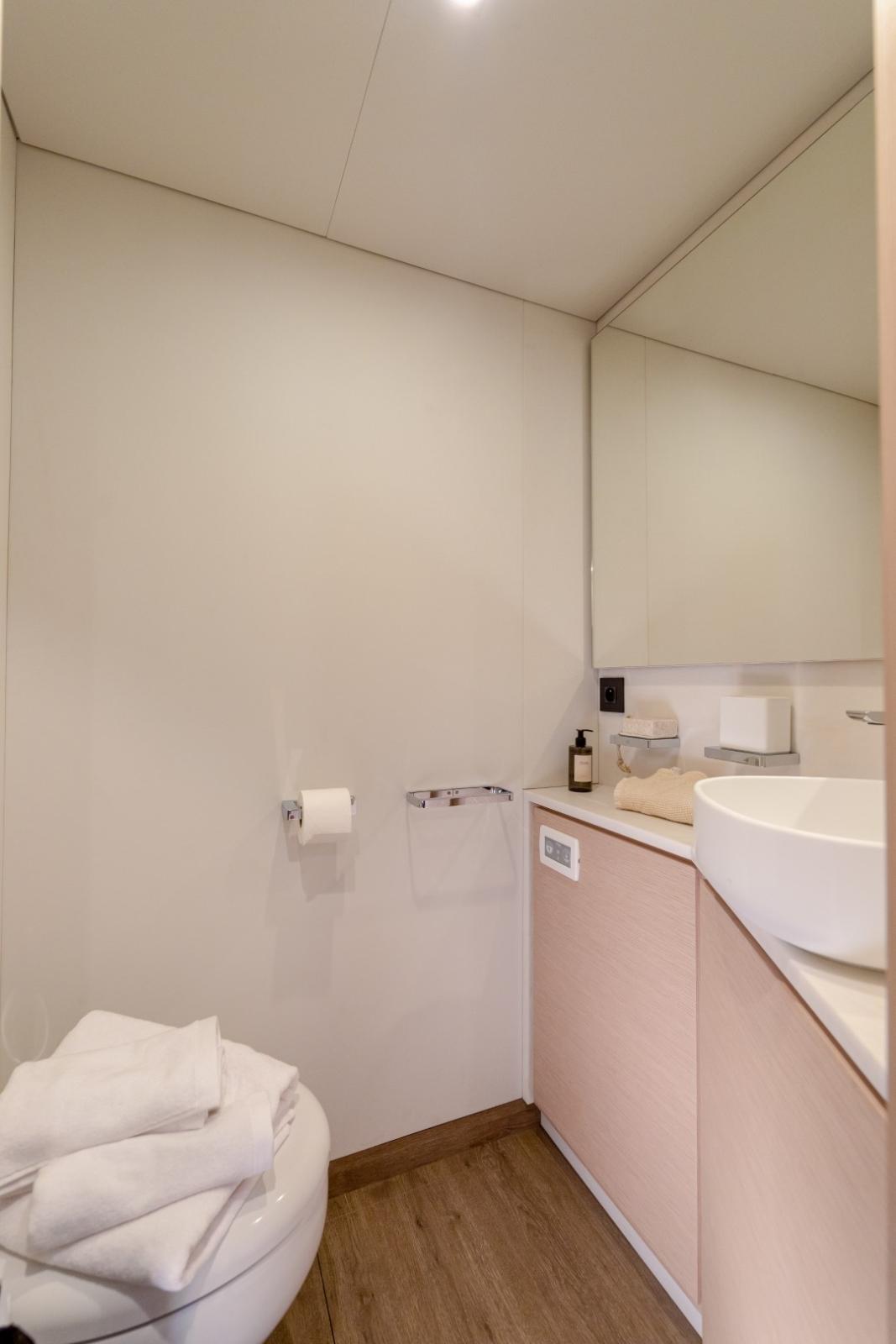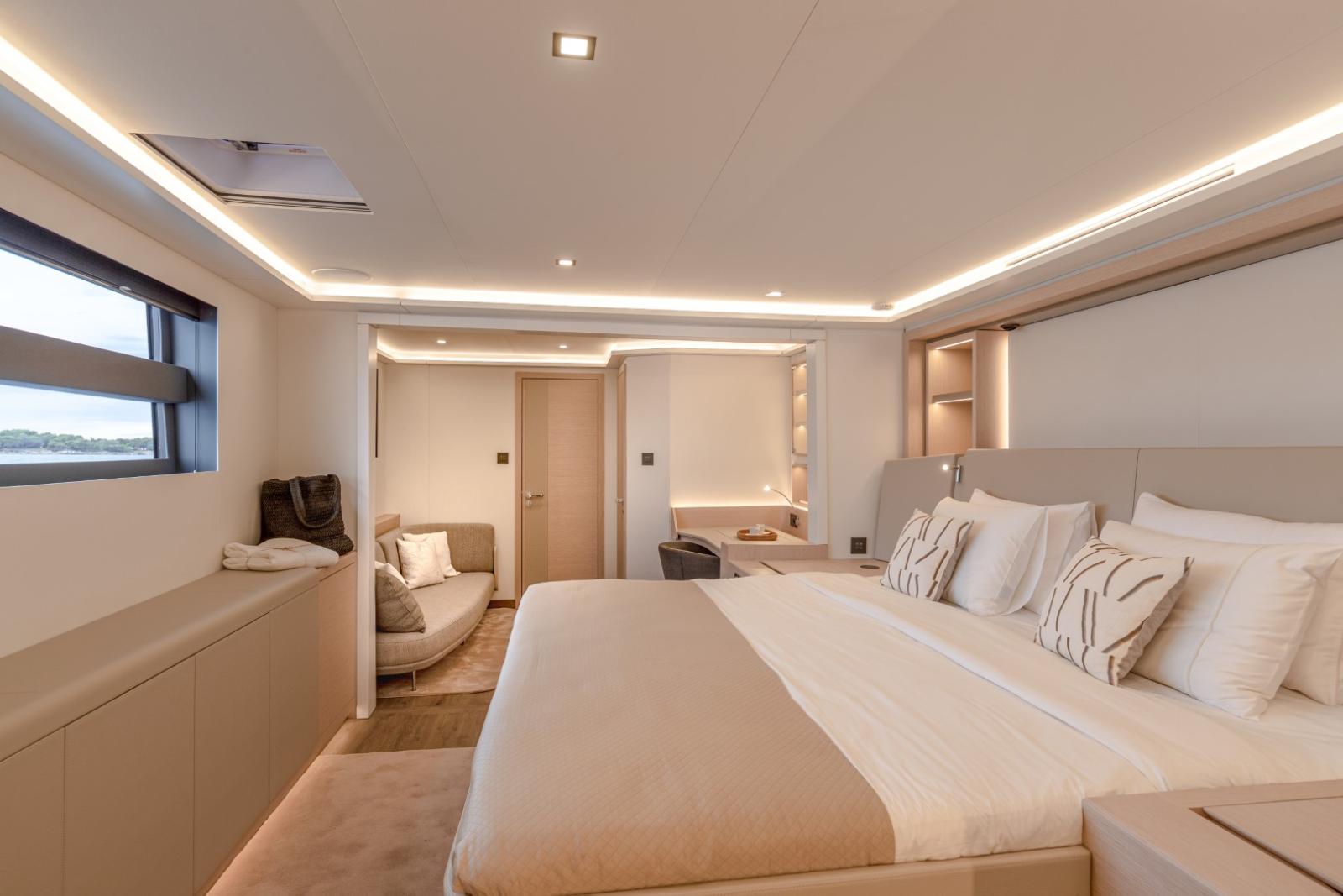Avec près de 24 m de longueur hors tout et plus de 11 m de largeur, il combine élégance, volumes généreux et technologies avancées pour offrir une expérience de navigation exceptionnelle. Son design se distingue par des lignes harmonieuses, de vastes hublots panoramiques et des espaces modulables inspirés du monde des superyachts.