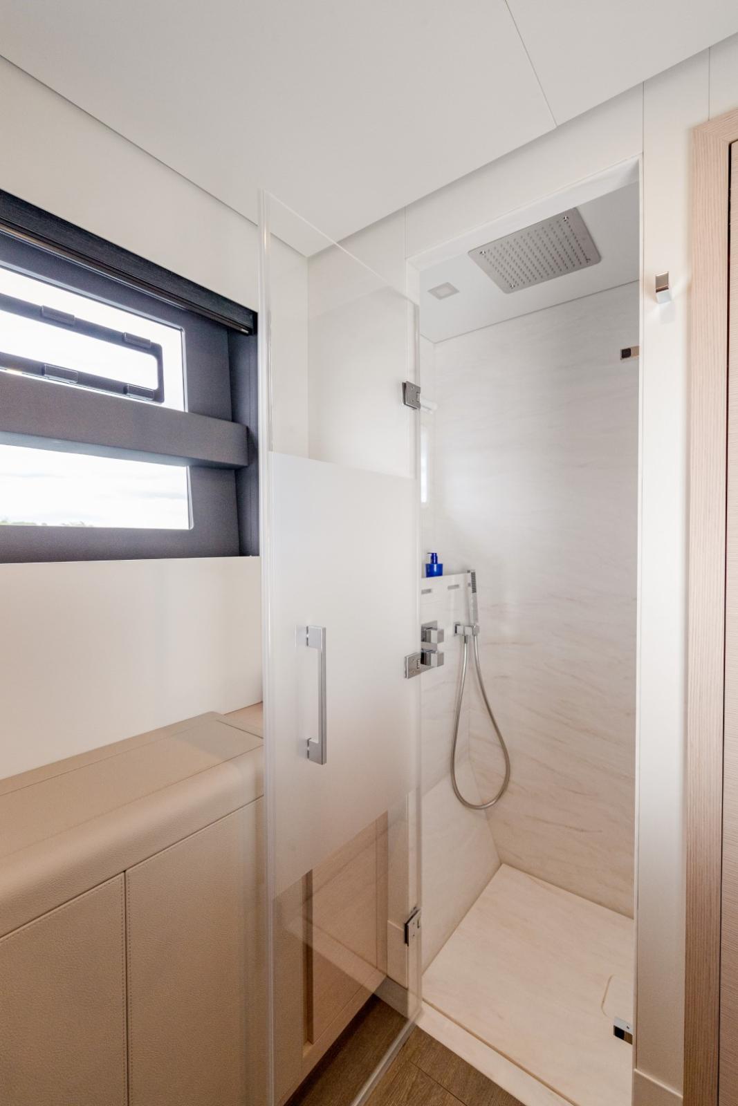 Sa quille légère, ses voiles généreuses et son architecture font du Thíra 80 un voilier performant sous voile, tout en offrant une qualité de vie à bord digne des plus grands yachts de croisière.