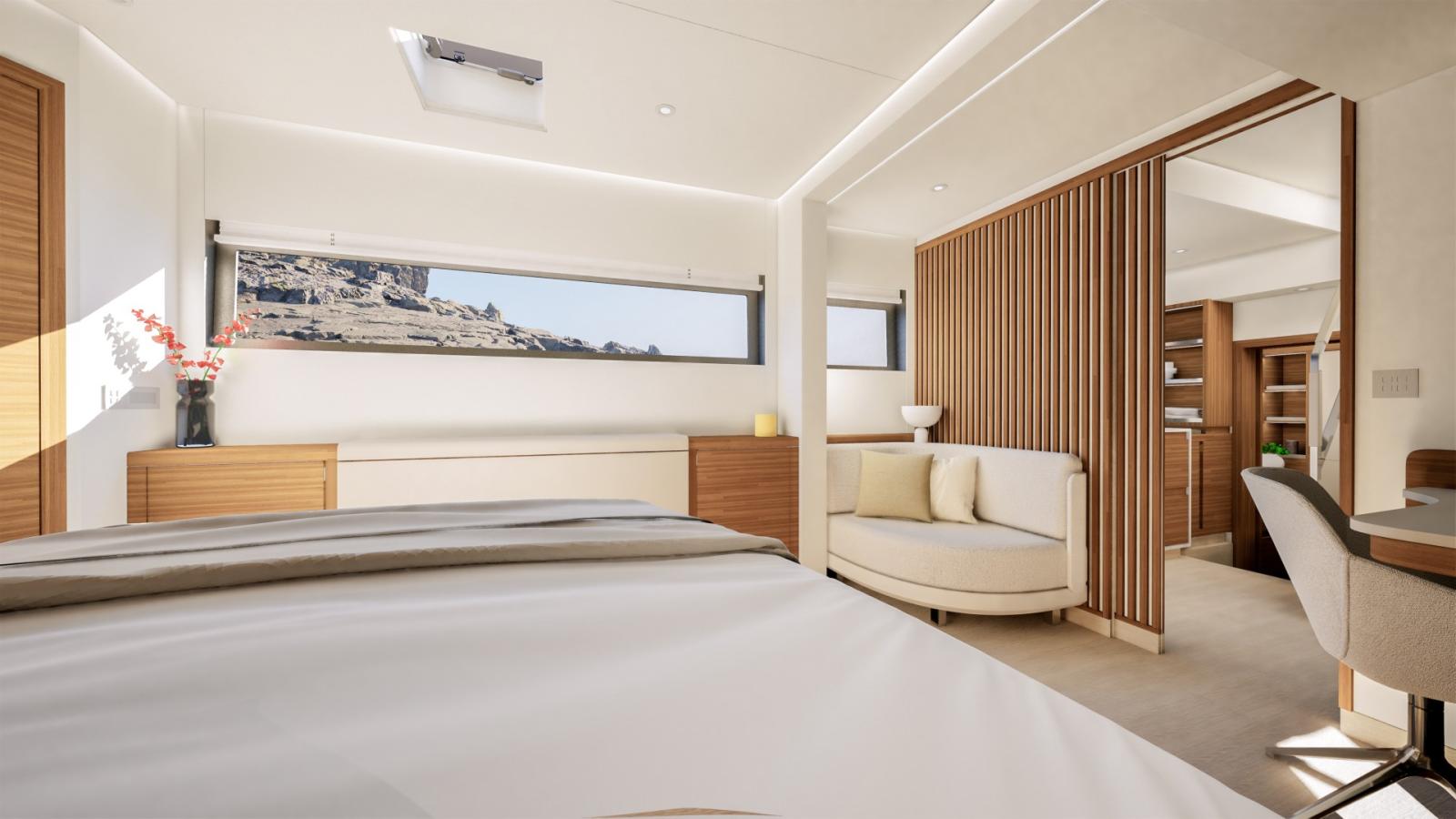 Le FPY | 70S incarne une vision contemporaine du yachting, où design affirmé et personnalisation poussée se rencontrent.