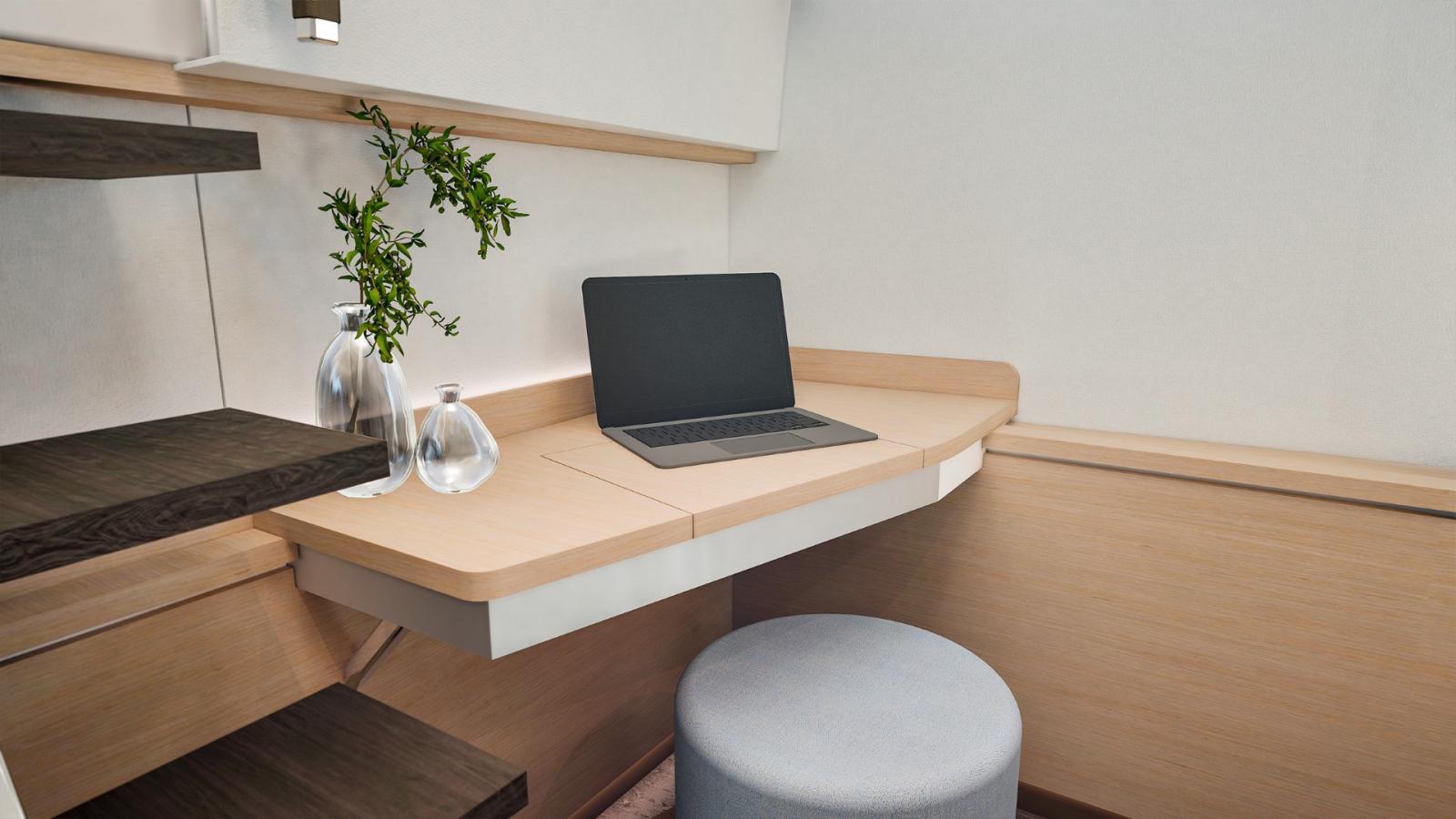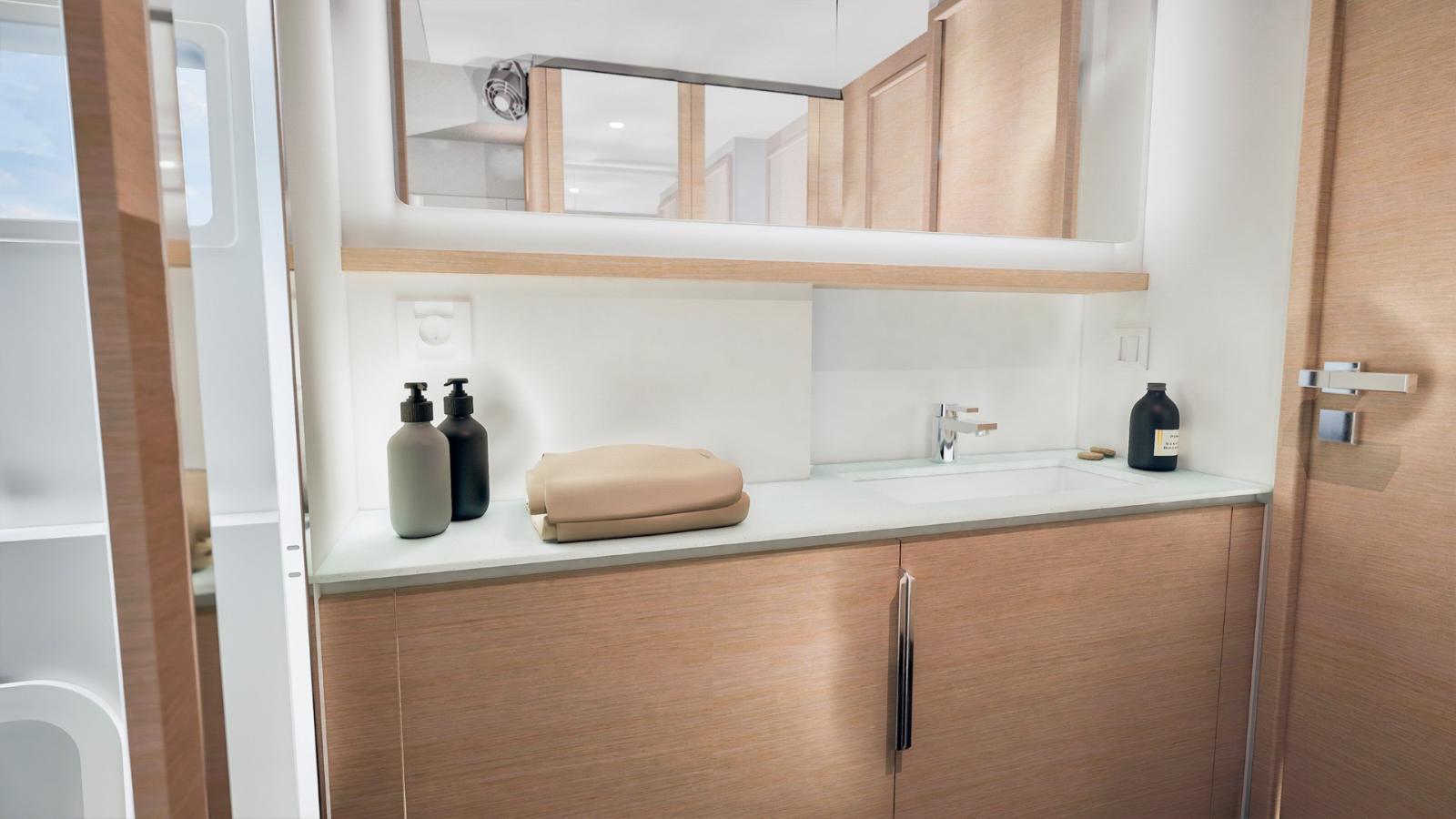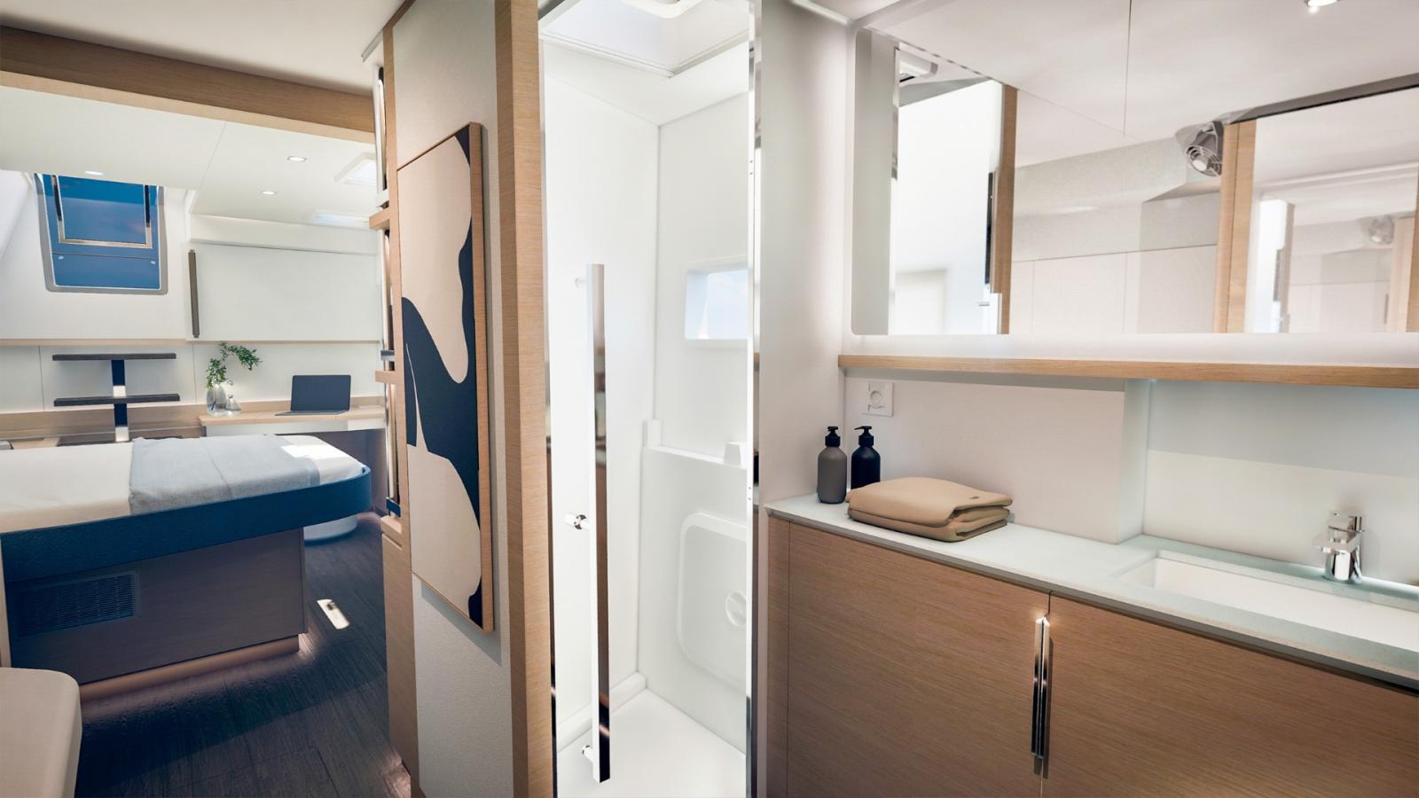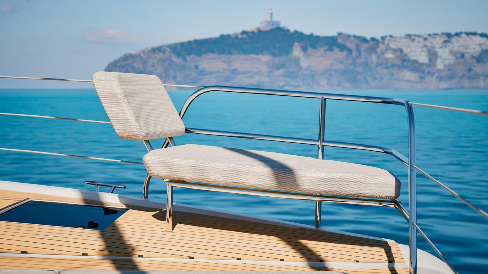 Avec ses 17 mètres de longueur, il offre des volumes généreux et une circulation fluide entre les espaces. Le carré lumineux profite d’une ventilation naturelle optimisée grâce à une large baie coulissante et à un accès direct vers le cockpit avant — une conception jusqu’ici réservée aux modèles emblématiques de la marque.