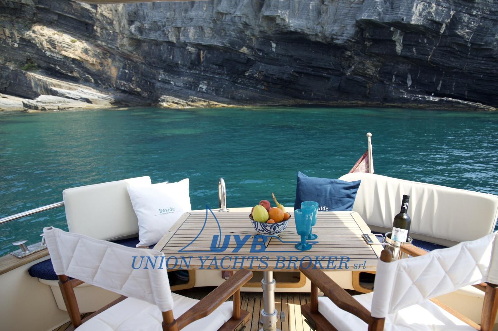 Ouverture du compartiment moteur électrique, Eau sous pression, 3 Batteries, Passavant en teck, Chargeur de batterie (2025), Douche de cockpit, Phare de poursuite, Flaps électriques, Hard top, Plateforme arrière (strutturale), Pompe de cale manuelle, Cockpit en teck, Prise de quai, Guindeau électrique, Echelle de bain, table de cockpit, Table pliante de salon.
