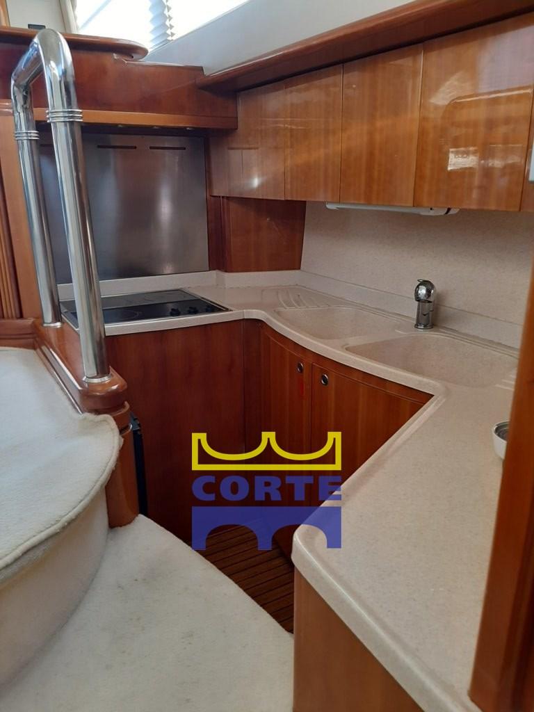 Alarme moteur, Alarme de pompe de cale, Eau sous pression, Chargeur de batterie (nuovo con dislpay controllo remoto), Douche de cockpit, Double barre à roue, Phare de poursuite, Flaps hydrauliques, Bossoirs pour annexe (passerella), Spots sous-marins (sotto piattaforma di poppa), Passerelle (idraulica), Plateforme arrière (poppa in teak), Pompe de cale automatique, Porte latérale, Cockpit en teck, Prise de quai, Rollbar, Guindeau électrique, Echelle de bain, Corne, Winch électrique arrière, Winch électrique avant.