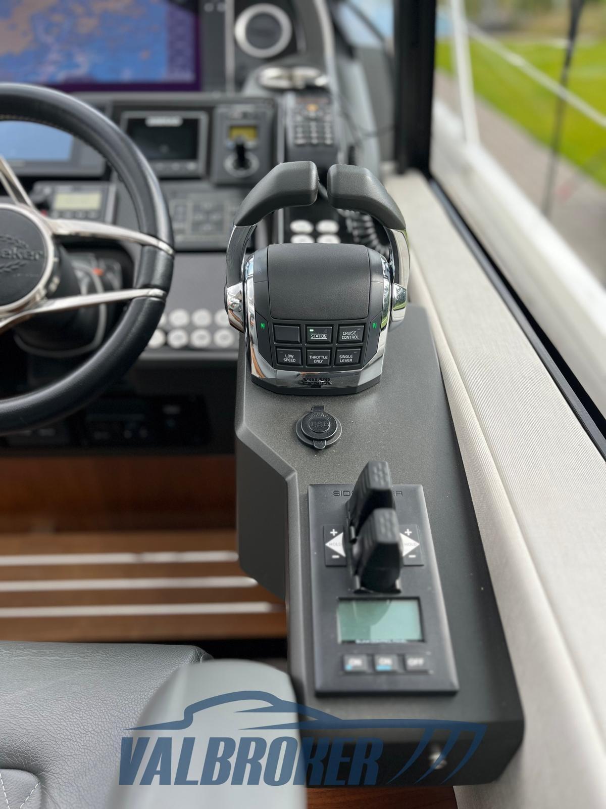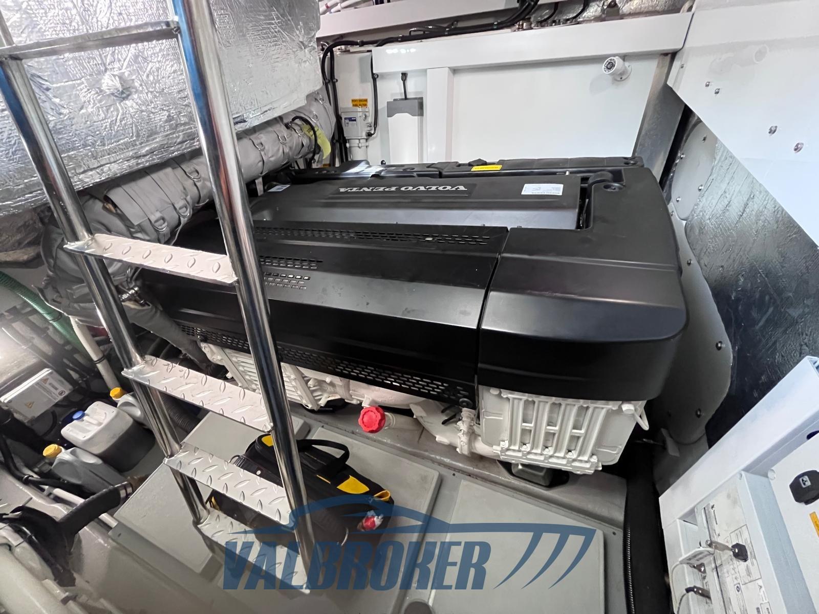 Performance, élégance et confort. Des performances exceptionnelles en mer avec le Volvo D13-900 avec seulement quelques heures de course. Porte coulissante en verre entre le cockpit et le carré. Tout en option : propulseur d’étrave et de poupe, générateur, climatisation et chauffage, plate-forme de levage d’annexe, garage d’annexe.