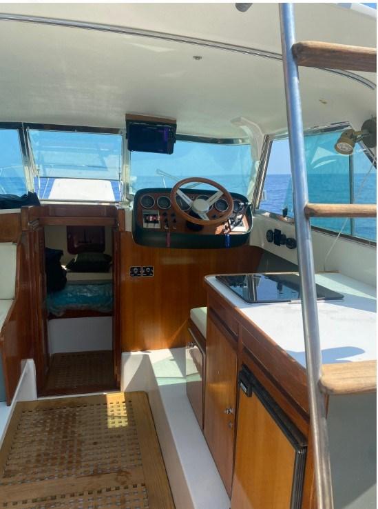 Alarme gaz, Alarme moteur, Ancre (Brice da 7,5Kg), Eau sous pression, Douche de cockpit, Double barre à roue, Flaps hydrauliques, Lavabo dans le cockpit, Éclairage de courtoisie, Plateforme arrière, 2 Pompe de cale électrique, Porte latérale, Cockpit en teck, Prise de quai, Guindeau électrique, Echelle de bain, table de cockpit, Corne.