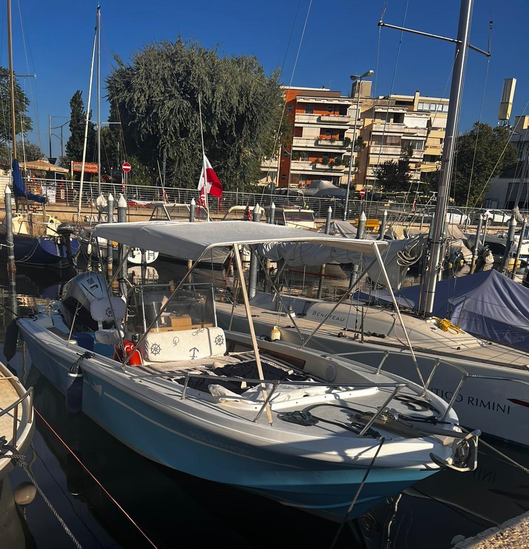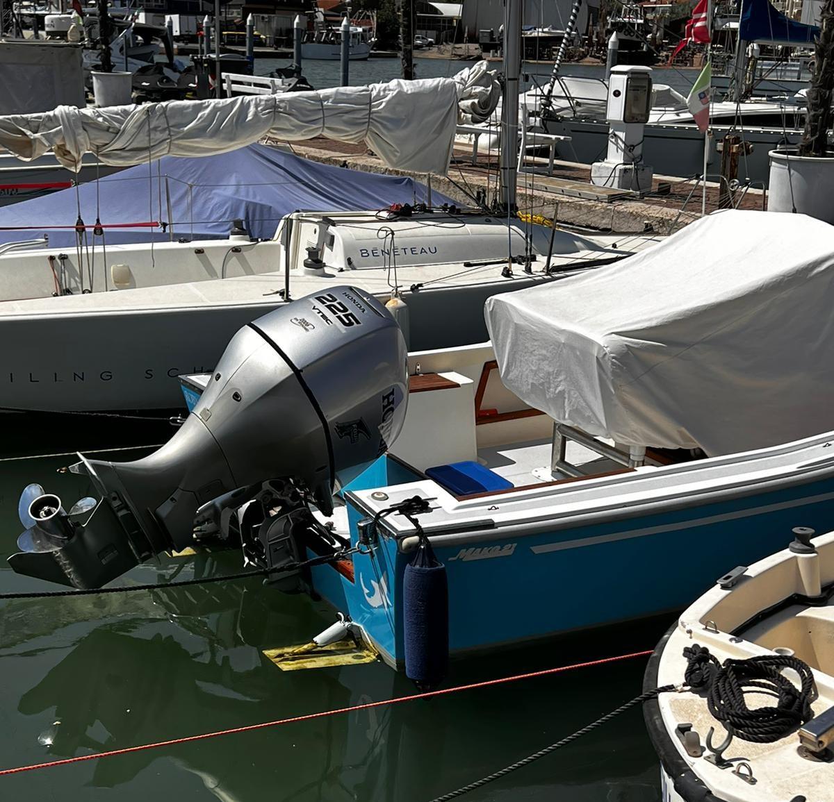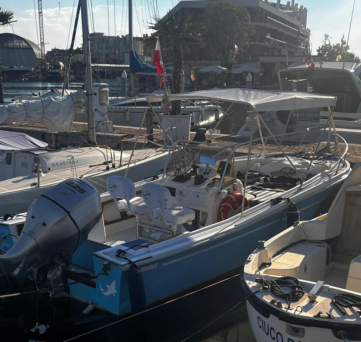 2 Batteries, remorque (2 assi), Couleur spéciale (wrapping azzurro), Douche de cockpit, Flaps électriques, Indicateurs de flaps, Éclairage de courtoisie, 2 Pompe de cale électrique, Guindeau électrique, Echelle de bain.