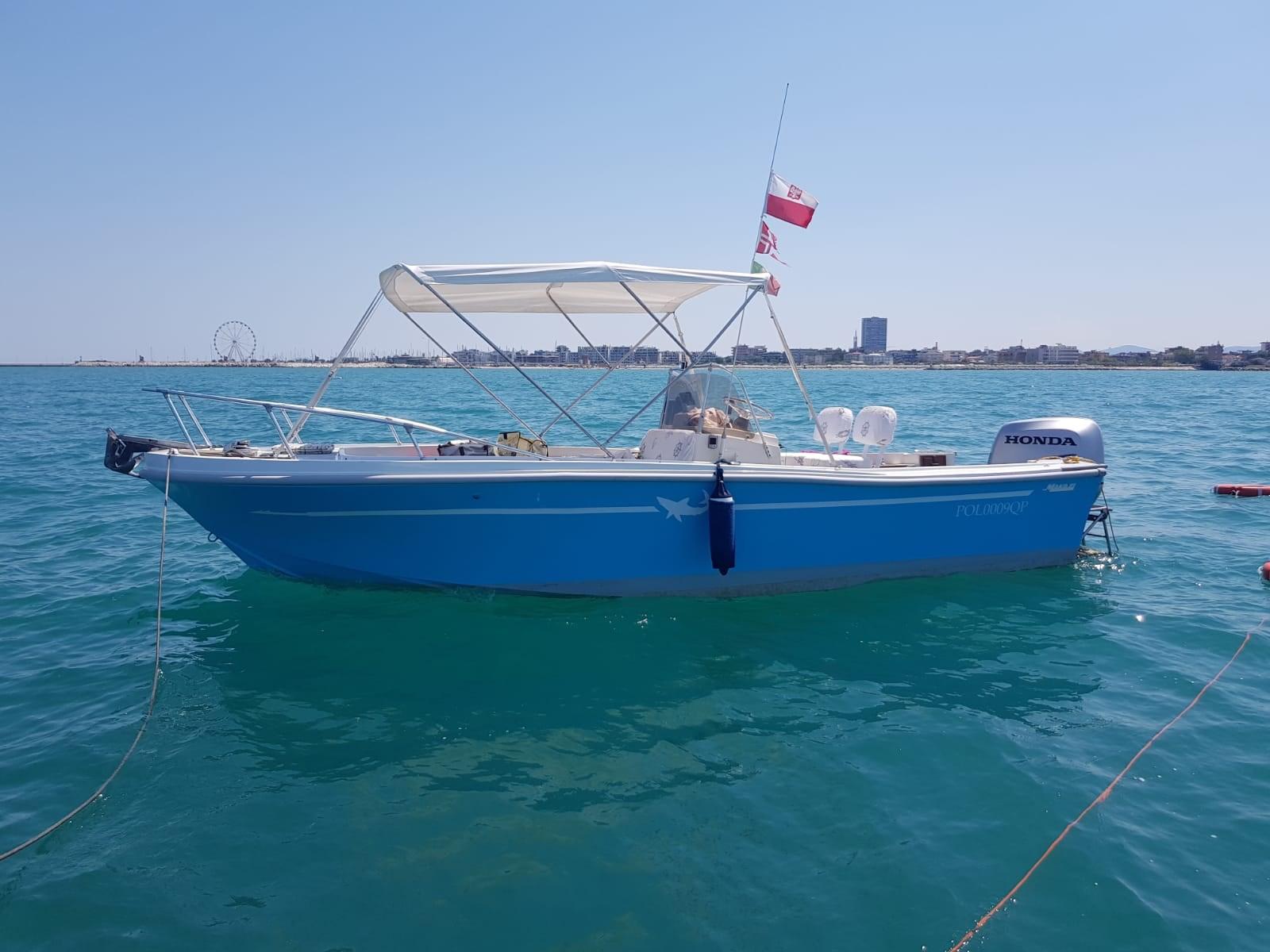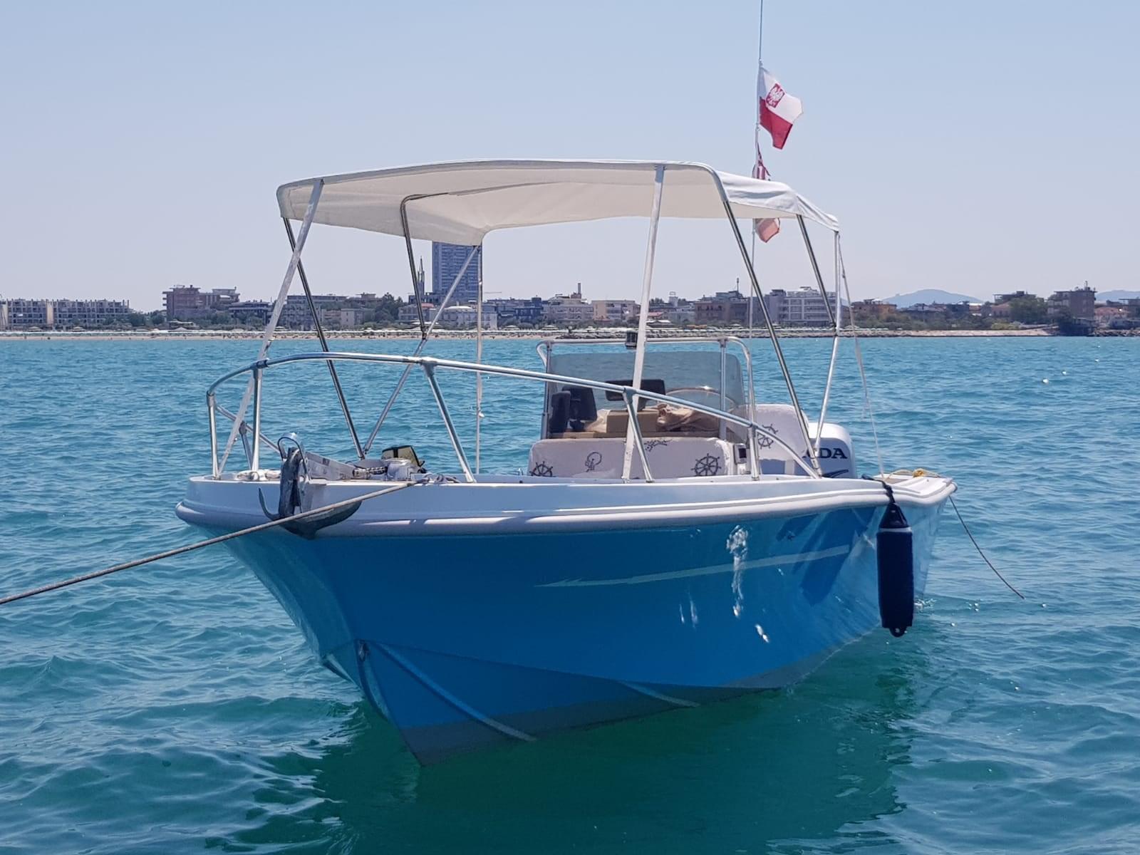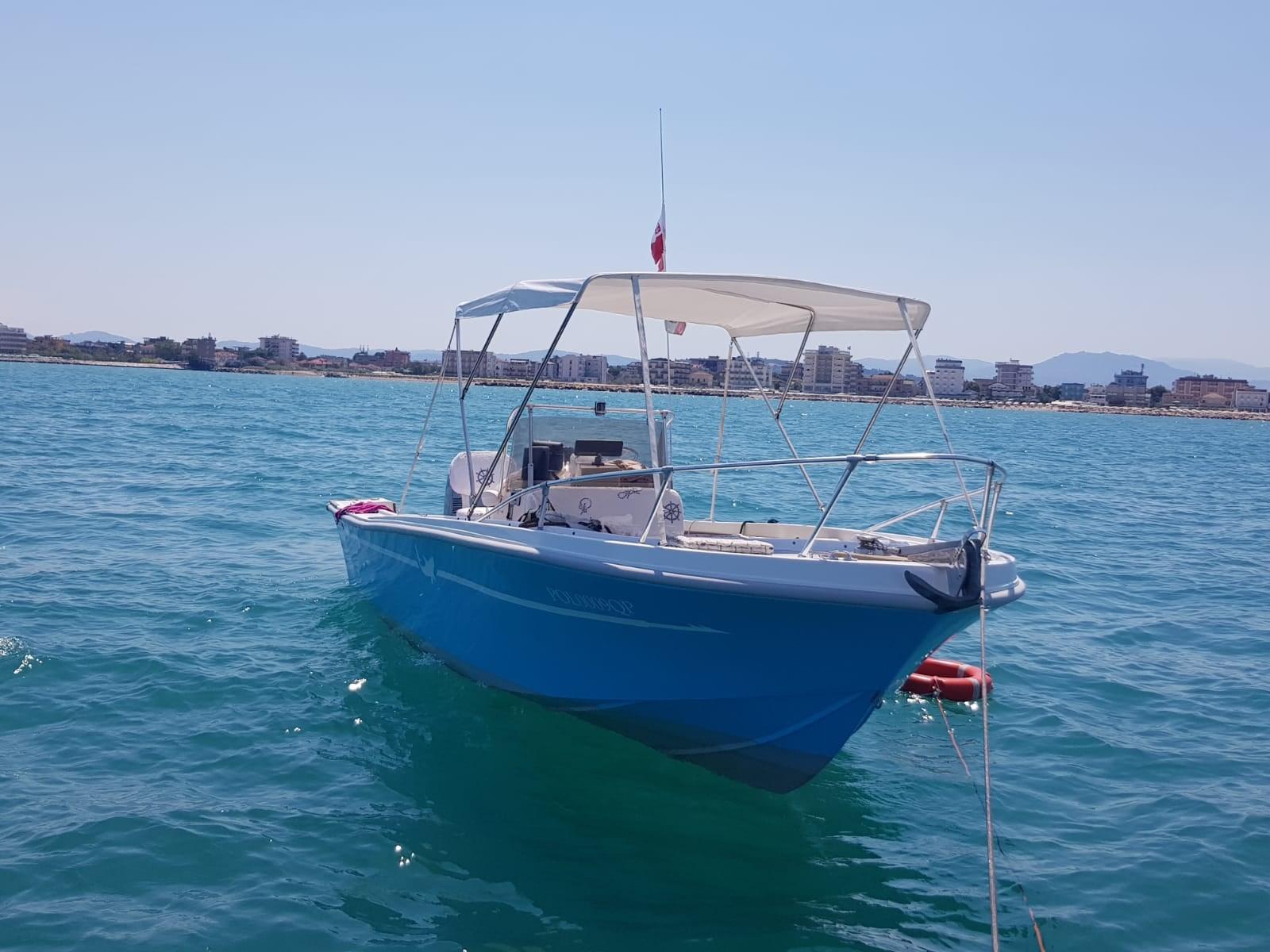 2 Batteries, remorque (2 assi), Couleur spéciale (wrapping azzurro), Douche de cockpit, Flaps électriques, Indicateurs de flaps, Éclairage de courtoisie, 2 Pompe de cale électrique, Guindeau électrique, Echelle de bain.