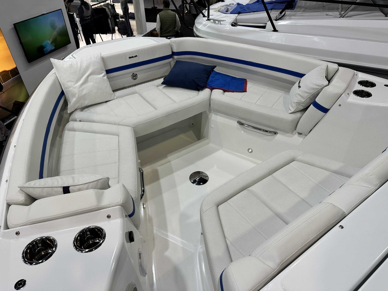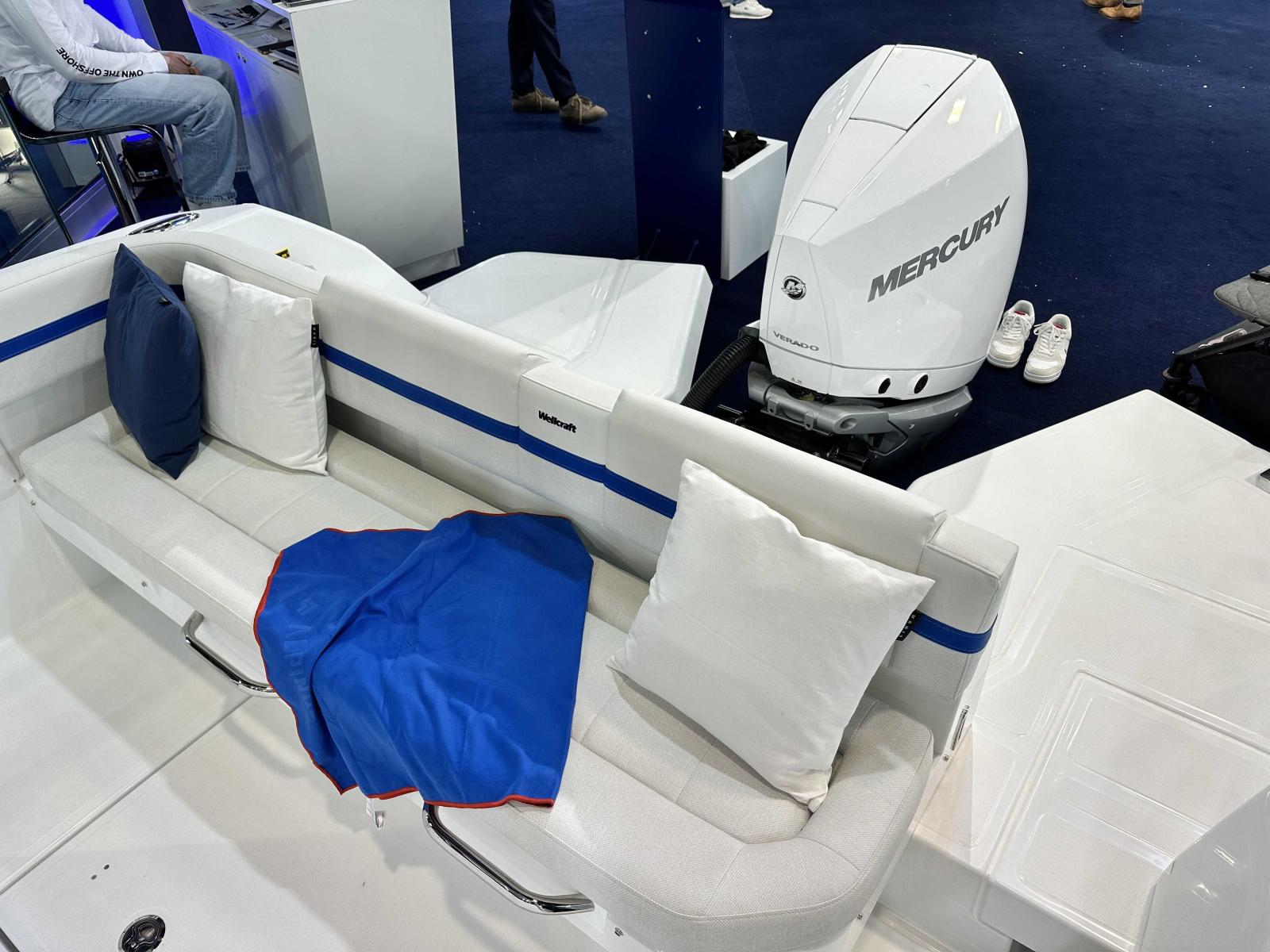 Wellcraft 28 explorer, coque grise, mercury 350 XXL V10 blanc, sellerie de cockpit Desert, version barracuda, finition premiere, pack cabine avant, pack eau douce, pack ancre, pack éléctronique premium Garmin, pack audio Fusion, 2 taquets centraux additionnel, housse de protection, table avant et coussin, propulseur d'étrave, projecteur de pont, paque de cuisson gaz 1 feu, refrigerateur 20l sous siège pilote, reservoir essence 530L, flaps electriques et toit ouvrant manuel !