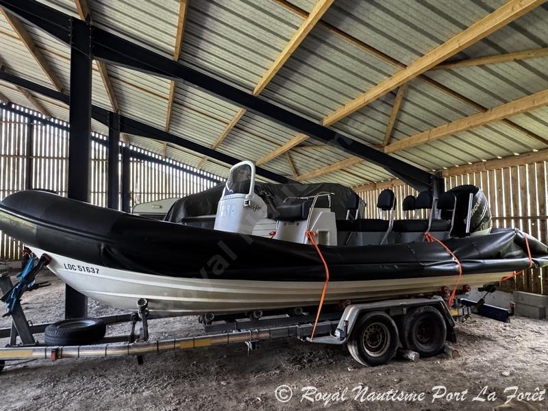 VALIANT 750 PATROL de 2005, flotteurs remplacés vers 2018 par des Cardot Hypalon. Moteur Mercury 300 Verado de 2011 avec seulement 486 heures. 6 places sur sièges Jokey, bolster deux places pour pilote et co-pilote.