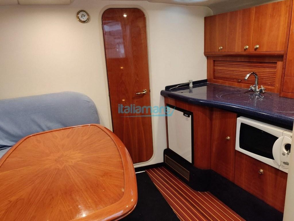 Alarme moteur, Alarme de pompe de cale, Eau sous pression, Douche de cockpit, Flaps électriques, Lavabo dans le cockpit, Éclairage de courtoisie, Passerelle, Plateforme arrière, Pompe de cale automatique, Cockpit en teck, Prise de quai, Connexion eau sous pression à quai, Rollbar, Guindeau électrique, Echelle de bain, table de cockpit.