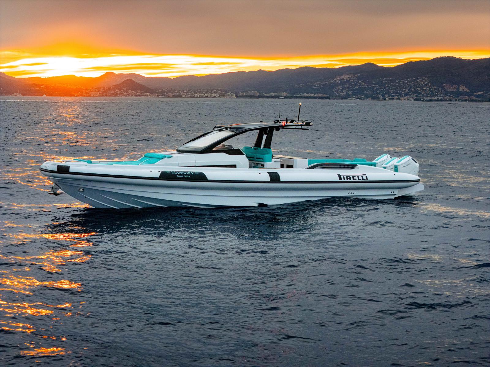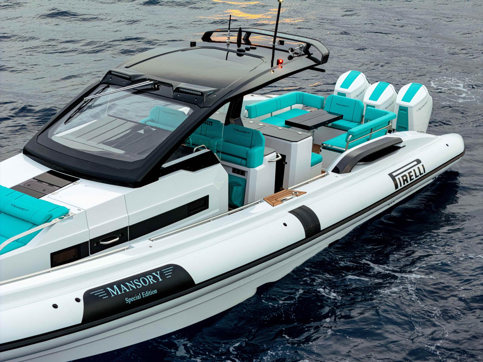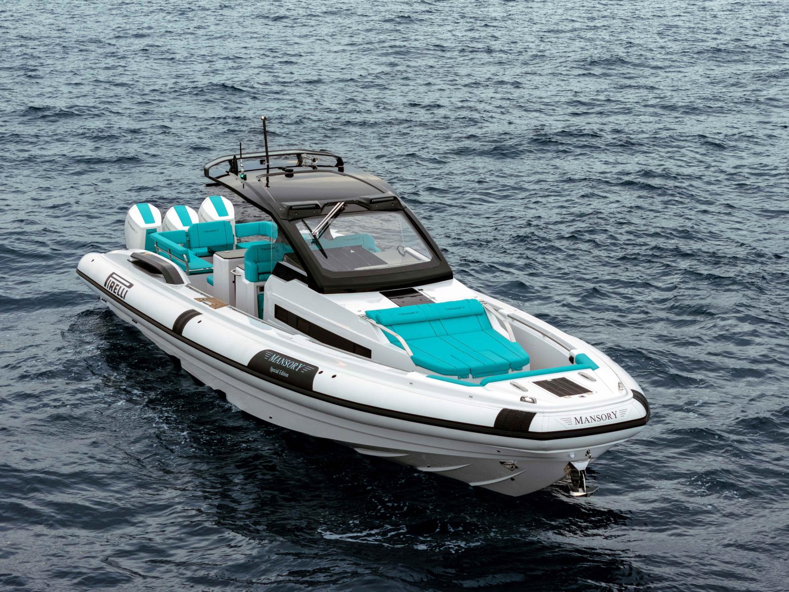 Le PIRELLI 50 MANSORY incarne l’aboutissement du semi-rigide de luxe et de performance. Basé sur le flagship de la gamme Pirelli Speedboats, ce modèle bénéficie d’une préparation exclusive MANSORY, allant bien au-delà d’une simple personnalisation esthétique.