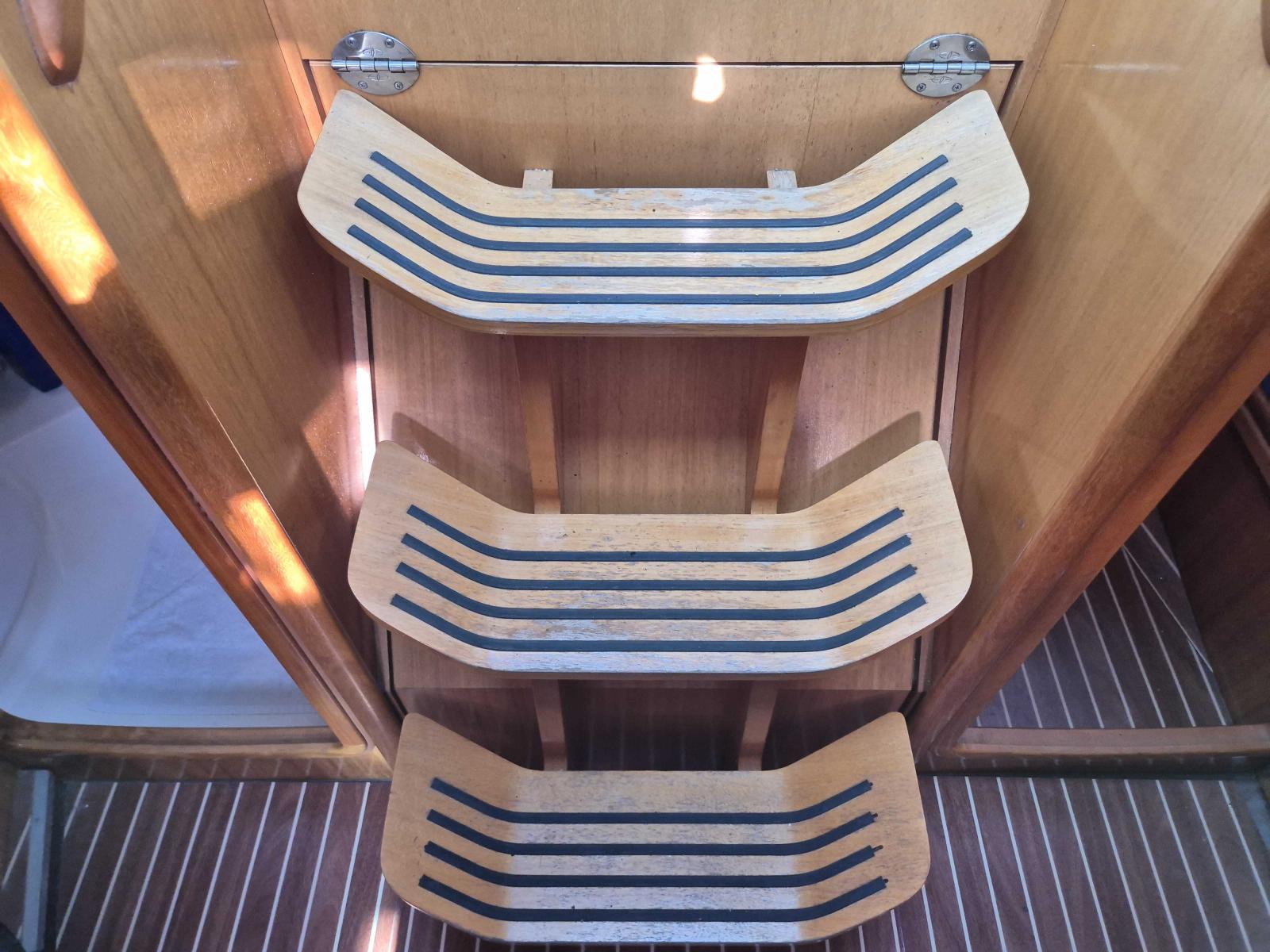 Ce modèle est également apprécié pour sa facilité de circulation vers l’arrière et sa plateforme, présente selon configuration, idéale pour la baignade et les mouillages prolongés.