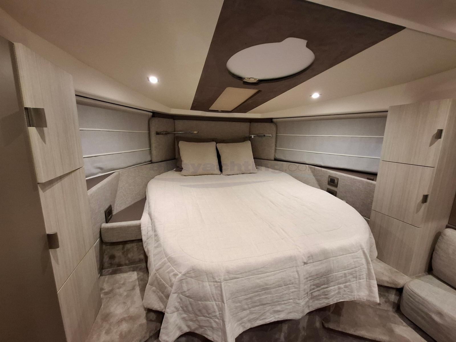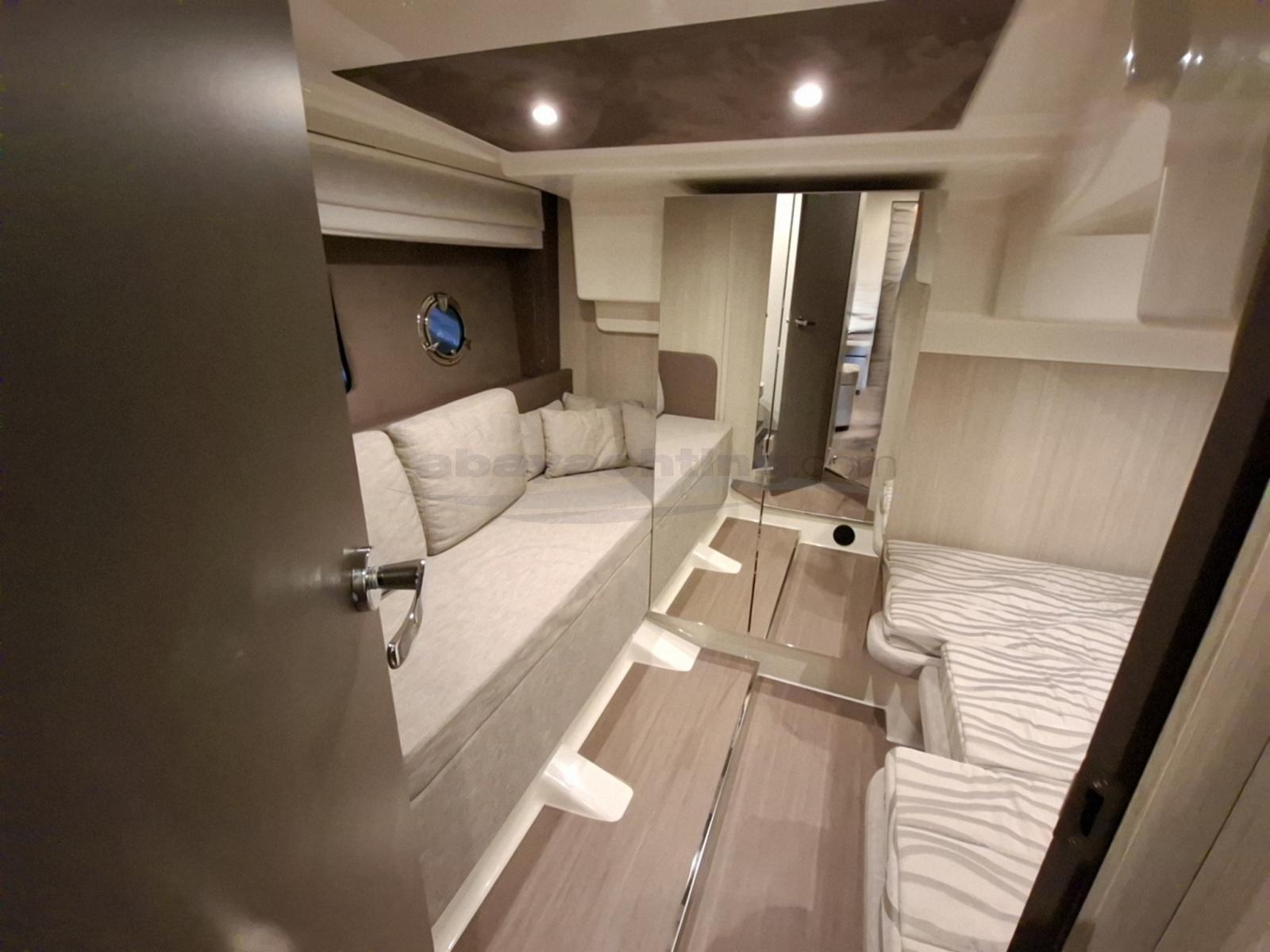 Entièrement équipé : générateur 220 V, propulseur d'étrave, garage à annexe, climatisation réversible 16 000 BTU, volets compensateurs Volvo Penta, hard-top avec double toit en toile électrique, table de cockpit télescopique, passerelle hydraulique Besenzoni éclairée, bimini pour le pont avant, auvents complets pour fermer le cockpit, bar extérieur avec réfrigérateur et évier, électronique Raymarine complète avec radar, pilote automatique et régulateur de vitesse.