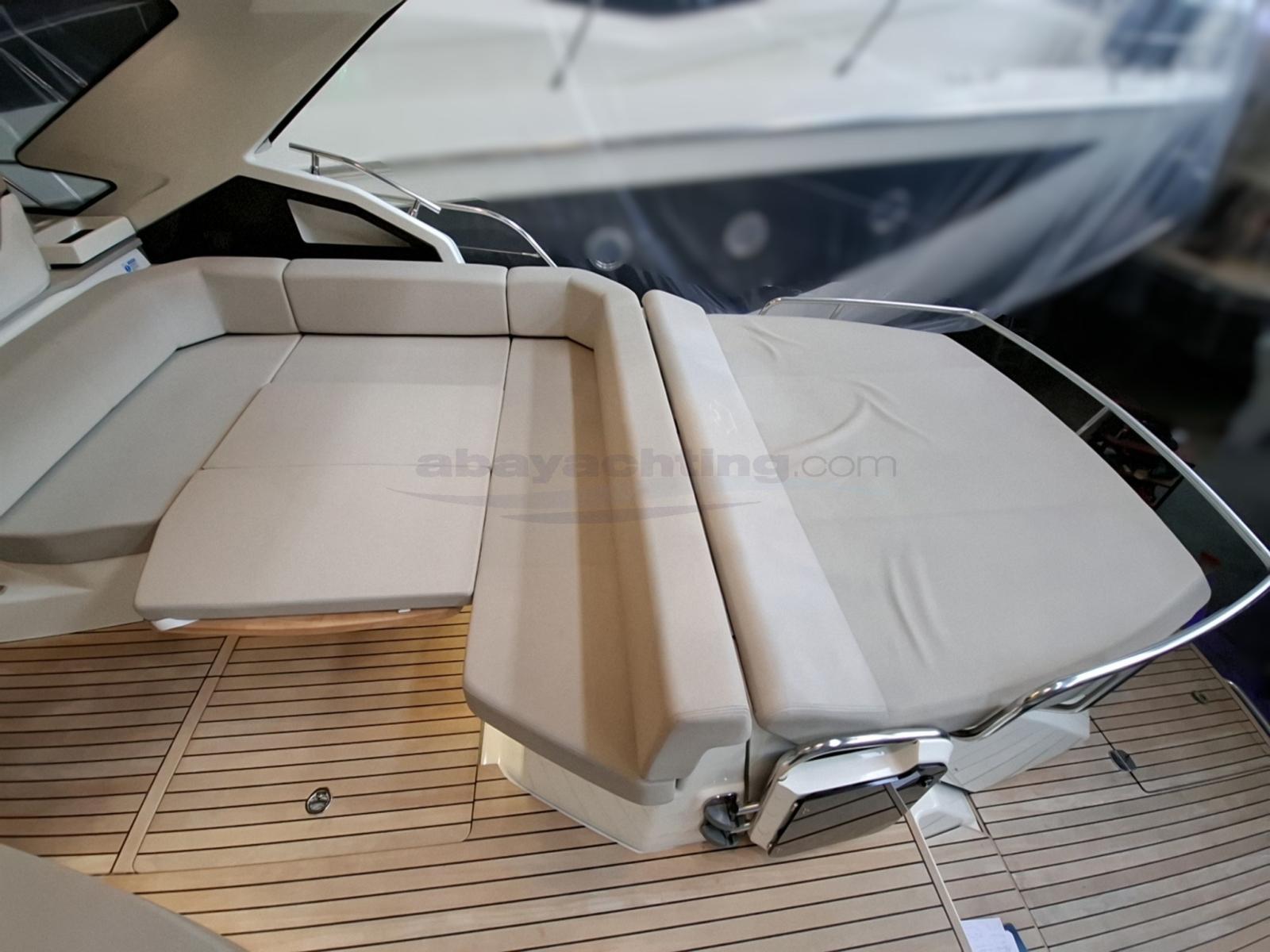 Bimini (bimini ombreggiante a prua per prendisole), Taud de cockpit (tendalini completi di chiusura pozzetto), Coussins arrieres (Colore crema), Coussin avant (con copertura), sellerie de cockpit, Tauds de pare-brise (telo protezione cristallo prua), Taud de soleil (tendalini (privacy) ombreggianti a poppa).