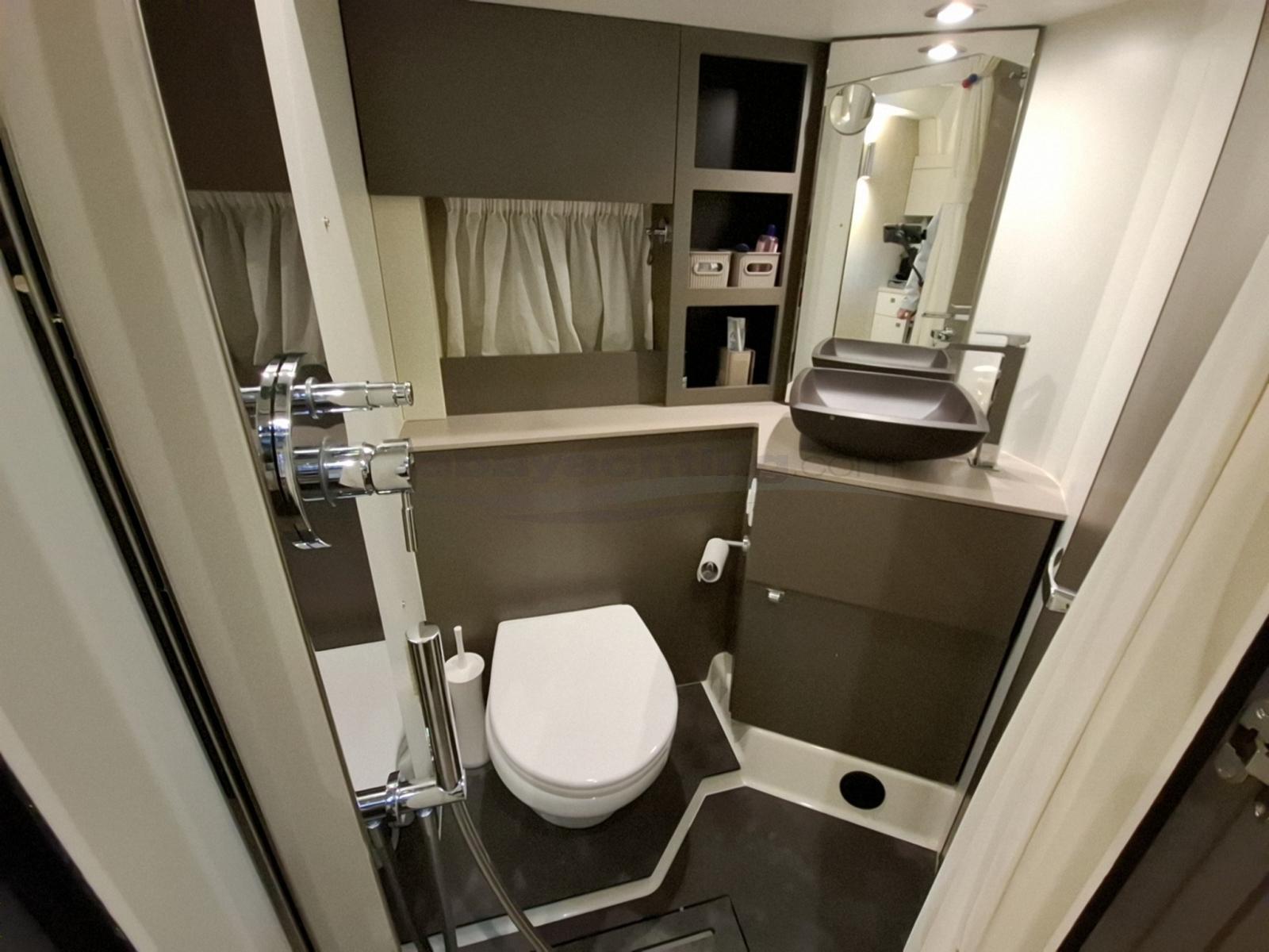 Eau Chaude, Ballon d'eau chaude, Coffre-fort, Air Conditionné (Convertibile da 16.000 BTU), Cuve à eaux noires, Indicateur du réservoir de carburant, Jauge de Réservoir d’Eau, Jauge de Réservoir d’Eaux Usées, Indicateur de pression d’huile, Indicateur de température moteur, Plancher intérieur en bois (Legno chiaro), Prises interieures 12v, Prises interieures 220v, Réservoir d'eau noire, Système d’Eau, 2 Toilettes électriques.