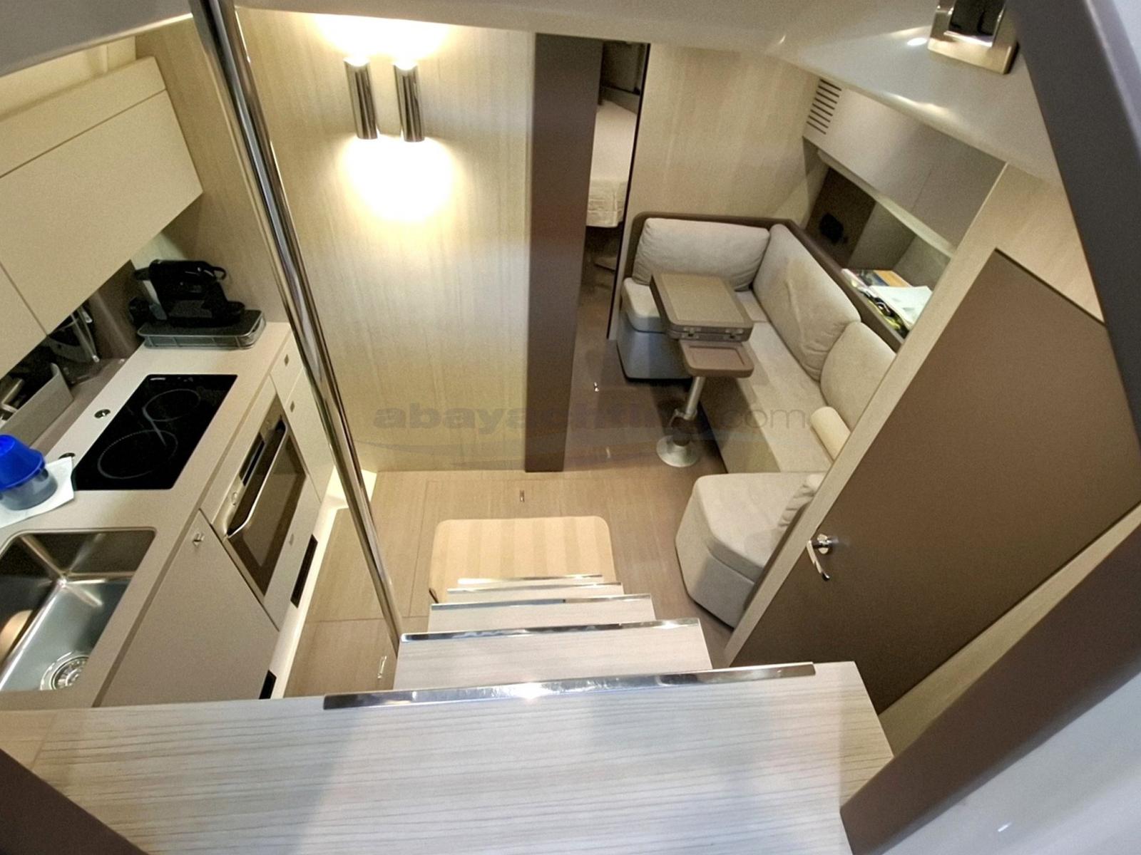 2 moteurs Volvo Penta D6 400 avec classement DPI, 5 cylindres turbo, propulsion arrière avec système de contrôle électronique du bateau, 5500 cm3 et commande par joystick dédiée.